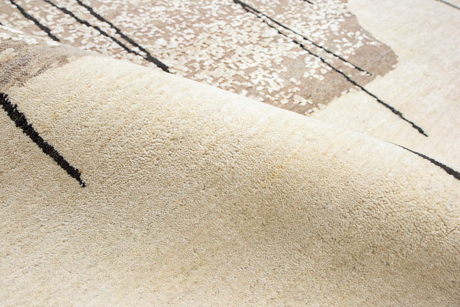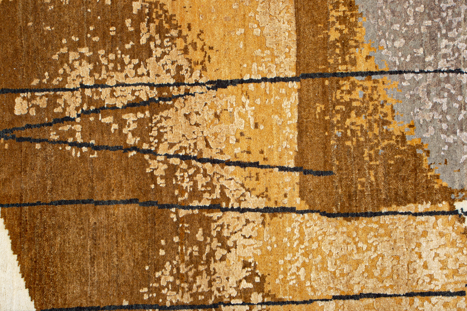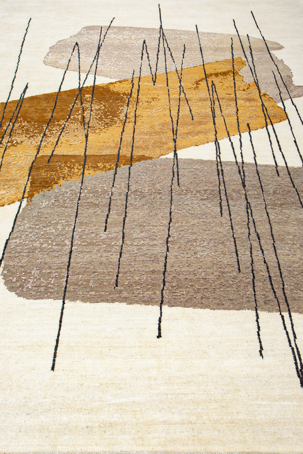 Дизайн ковров напоминает современные полотна художников-абстракционистов и производит столь же яркое и незабываемое впечатление в интерьере. Живописный эффект и необычная фактура зависят от выбора материала: натуральной шерсти, шёлка и от их сочетаний друг с другом. Ковры ткутся вручную в лучших мастерских Индии и Пакистана.