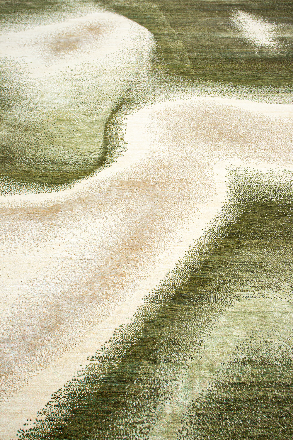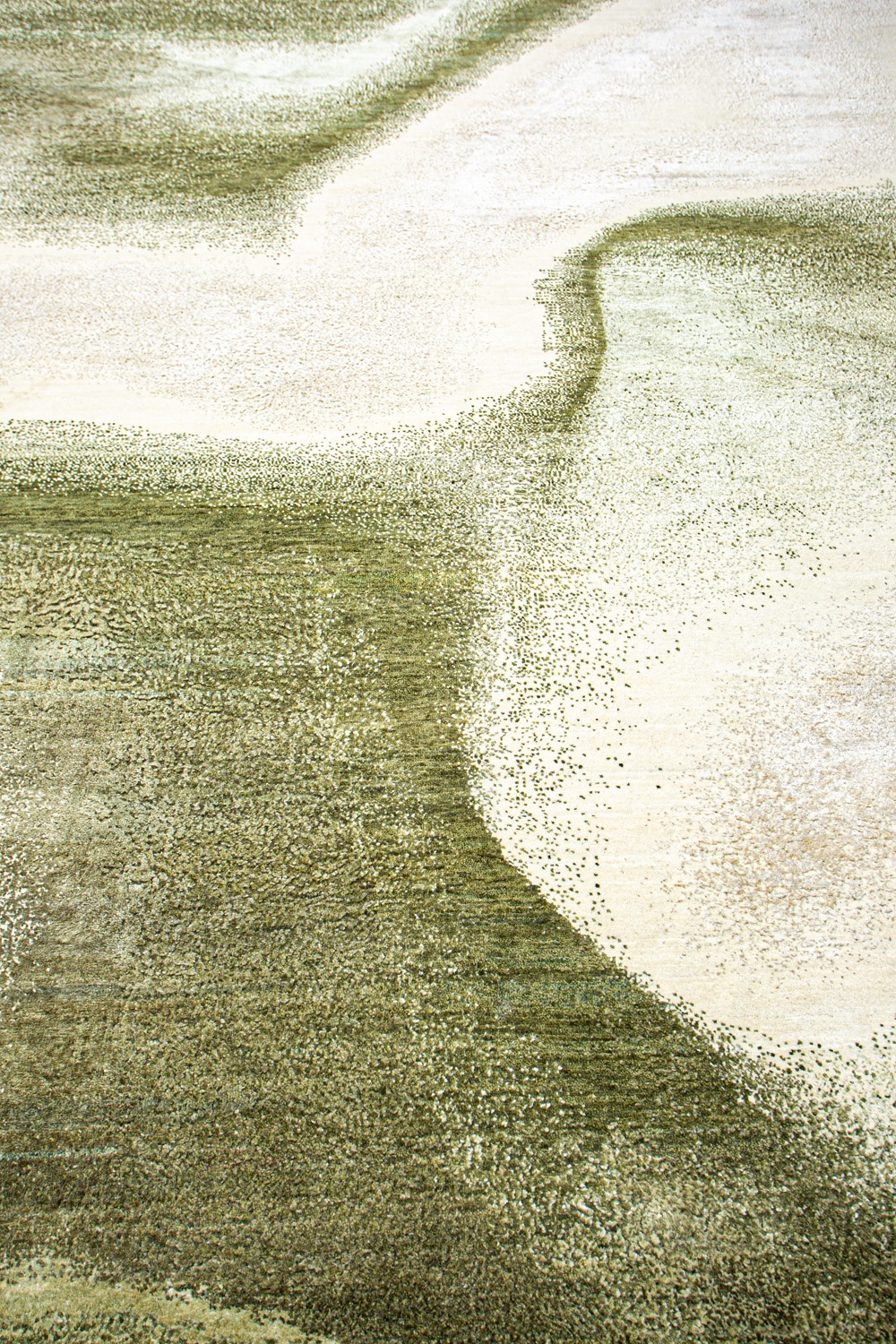 Дизайн ковров напоминает современные полотна художников-абстракционистов и производит столь же яркое и незабываемое впечатление в интерьере. Живописный эффект и необычная фактура зависят от выбора материала: натуральной шерсти, шёлка и от их сочетаний друг с другом. Ковры ткутся вручную в лучших мастерских Индии и Пакистана.