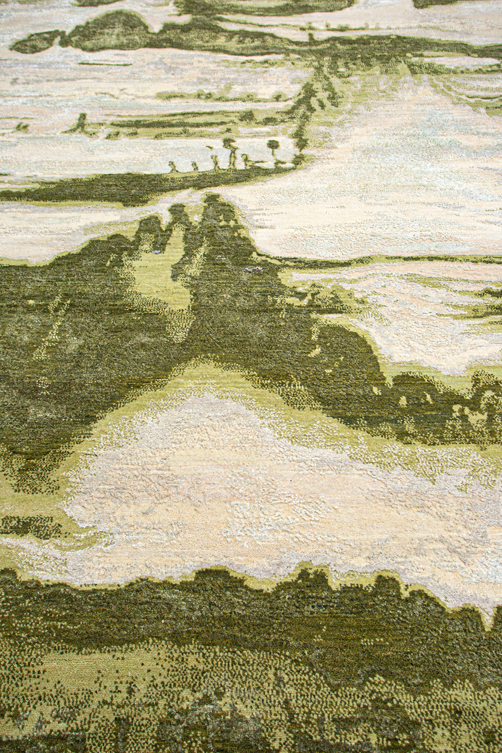 Дизайн ковров напоминает современные полотна художников-абстракционистов и производит столь же яркое и незабываемое впечатление в интерьере. Живописный эффект и необычная фактура зависят от выбора материала: натуральной шерсти, шёлка и от их сочетаний друг с другом. Ковры ткутся вручную в лучших мастерских Индии и Пакистана.