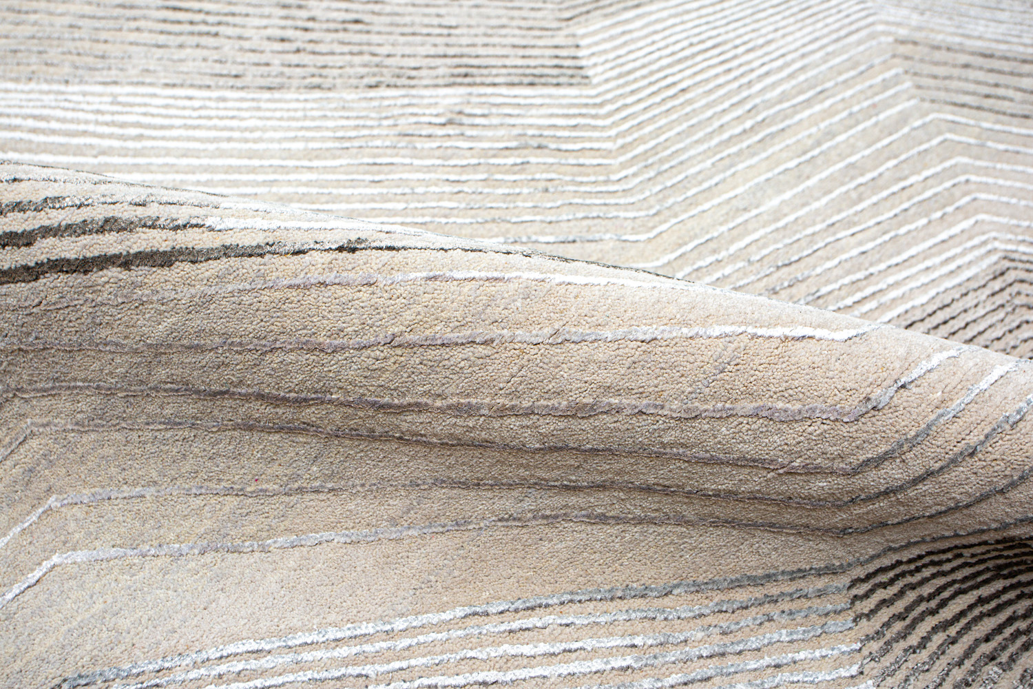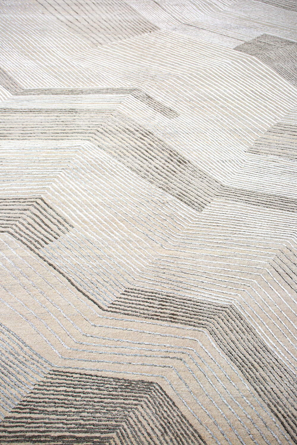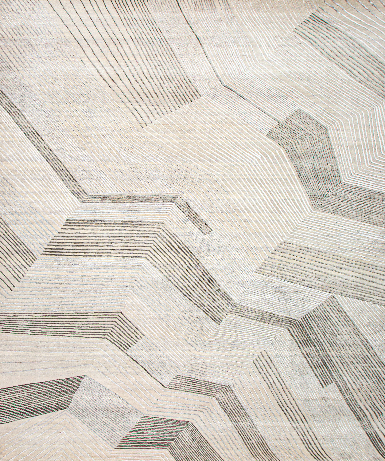 Крупные рисунки в виде линий и фигур на фактурной поверхности ковра превращаются в выразительные композиции. Они акцентируют на себе внимание и добавляют динамики в современный интерьер. Комбинации разных фигур и повторяющийся орнамент задают ритмическую основу пространству, привносят в него оригинальные оптические иллюзии.