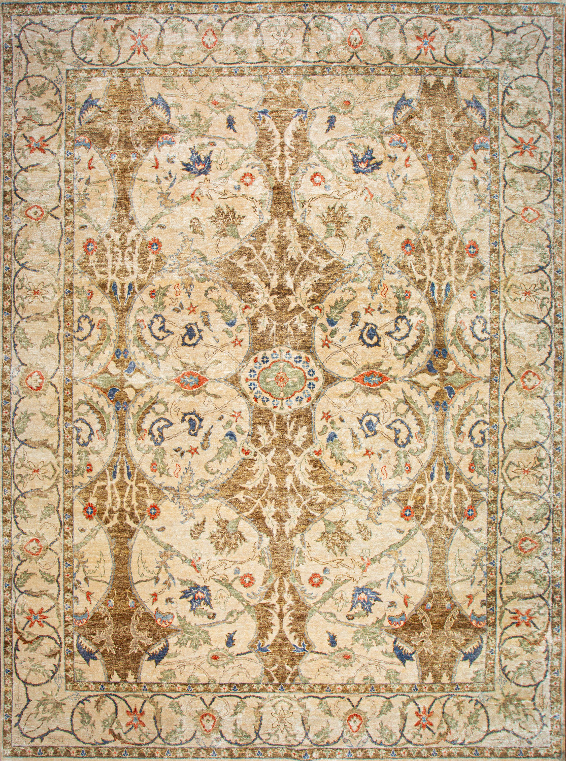 Родина этих ковров Индия и Пакистан. Чтобы создать такое произведение искусства у мастеров уходит от одного года до двух лет. Плотность ковров, в зависимости от размера, составляет от 150 000 до 400 000 узлов на квадратный метр.