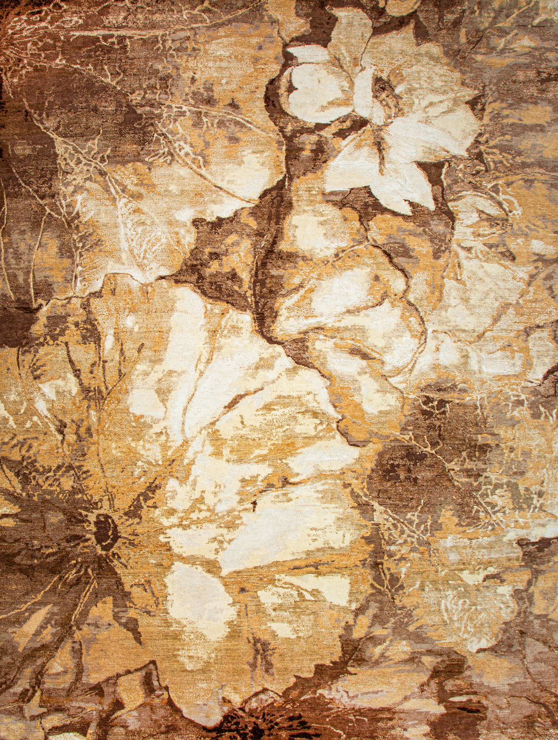 Дизайн ковров напоминает современные полотна художников-абстракционистов и производит столь же яркое и незабываемое впечатление в интерьере. Живописный эффект и необычная фактура зависят от выбора материала: натуральной шерсти, шёлка и от их сочетаний друг с другом. Ковры ткутся вручную в лучших мастерских Индии и Пакистана.