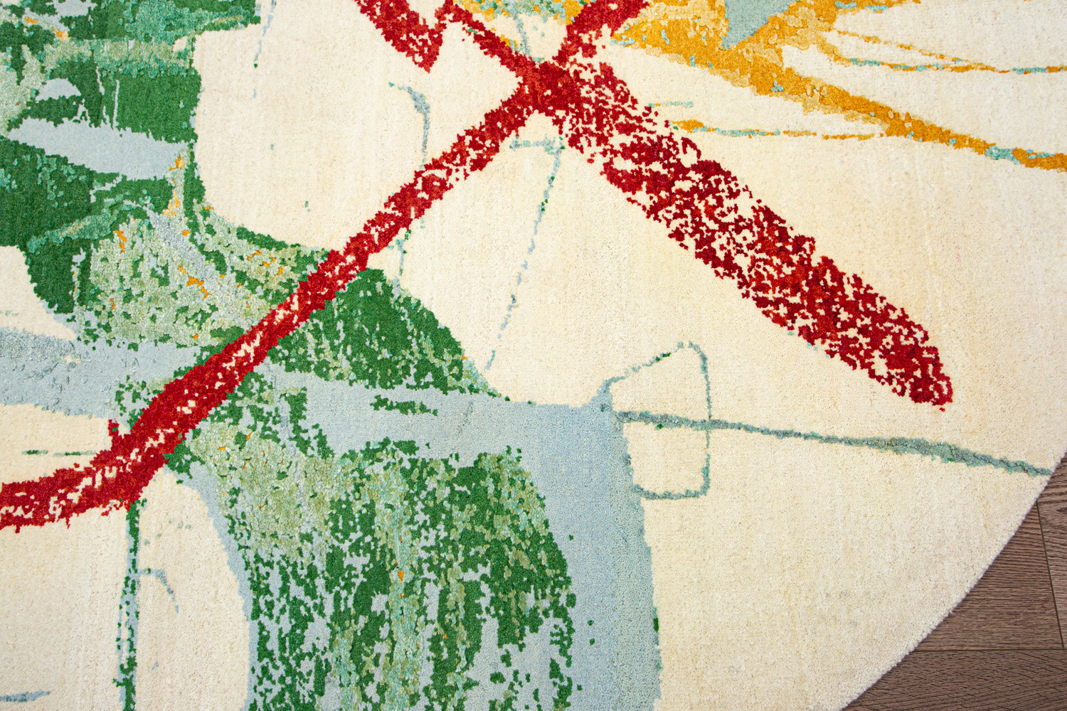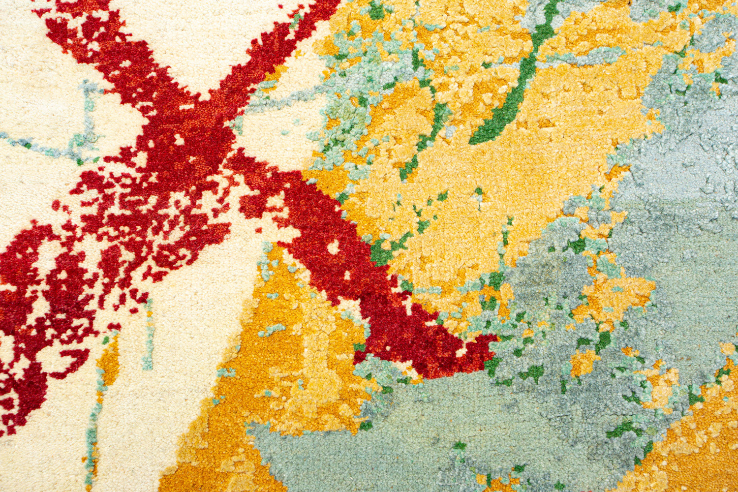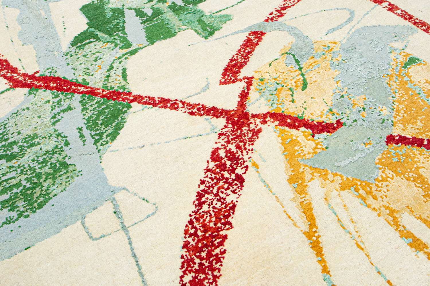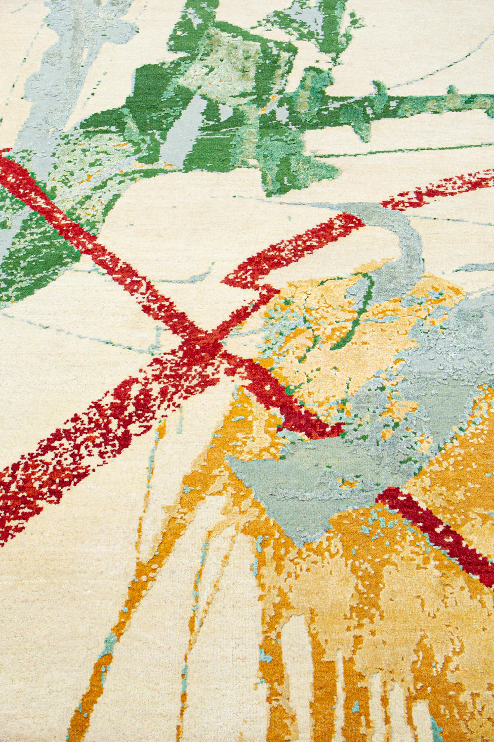 Дизайн ковров напоминает современные полотна художников-абстракционистов и производит столь же яркое и незабываемое впечатление в интерьере. Живописный эффект и необычная фактура зависят от выбора материала: натуральной шерсти, шёлка и от их сочетаний друг с другом. Ковры ткутся вручную в лучших мастерских Индии и Пакистана.
