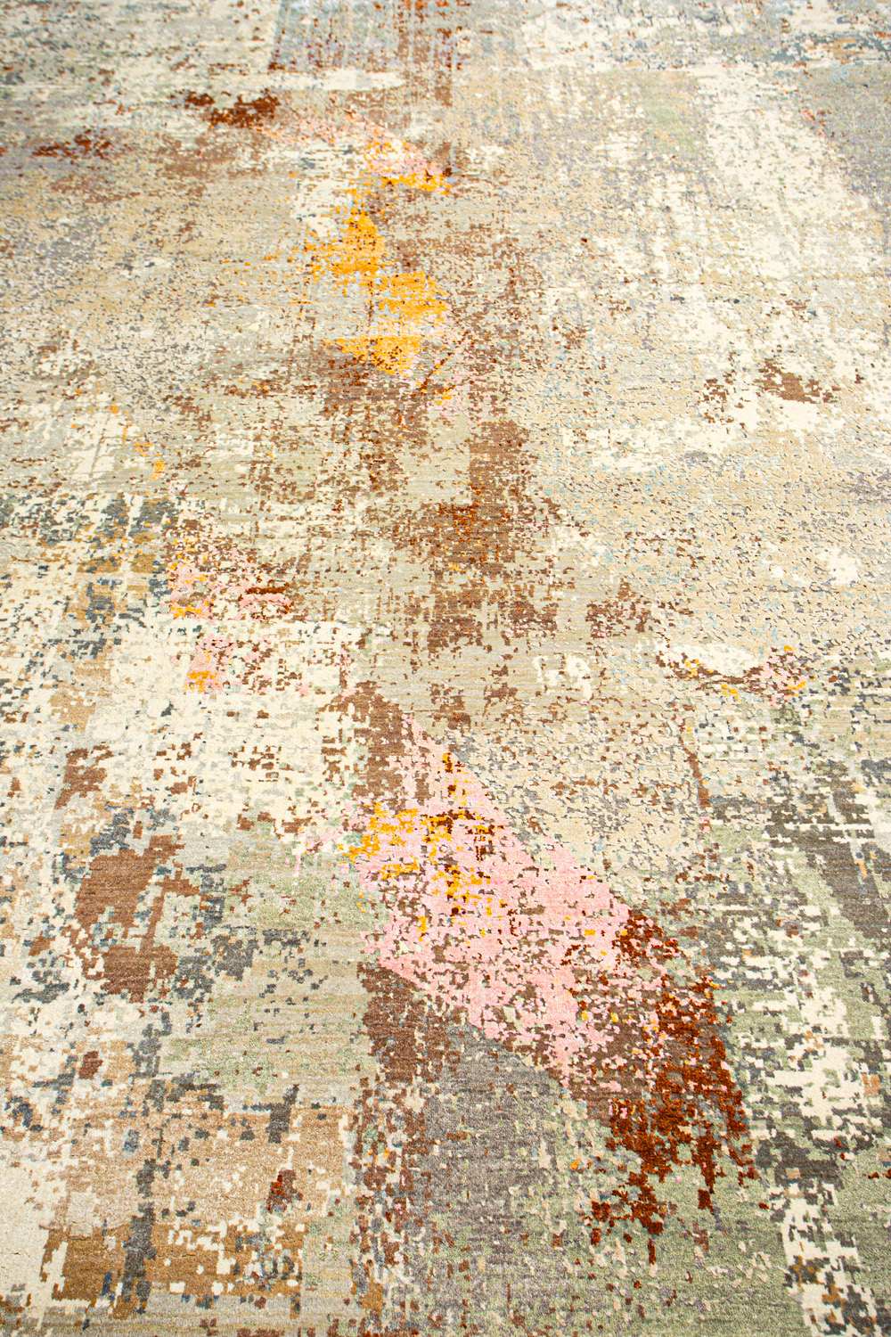Дизайн ковров напоминает современные полотна художников-абстракционистов и производит столь же яркое и незабываемое впечатление в интерьере. Живописный эффект и необычная фактура зависят от выбора материала: натуральной шерсти, шёлка и от их сочетаний друг с другом. Ковры ткутся вручную в лучших мастерских Индии и Пакистана.