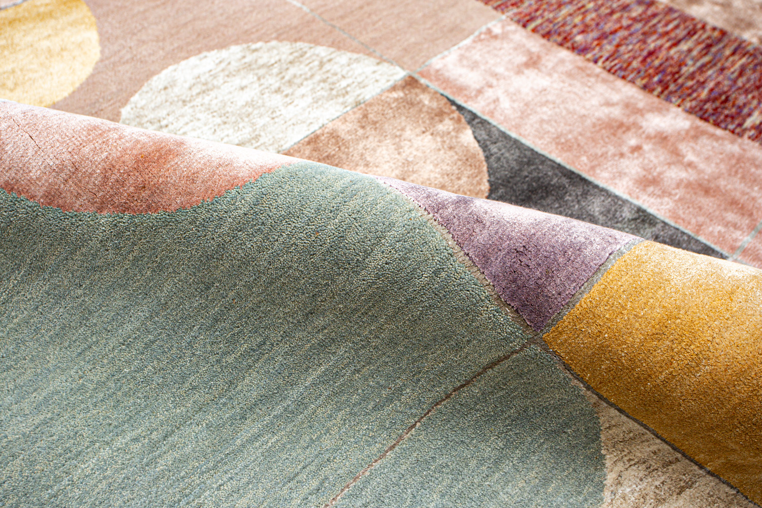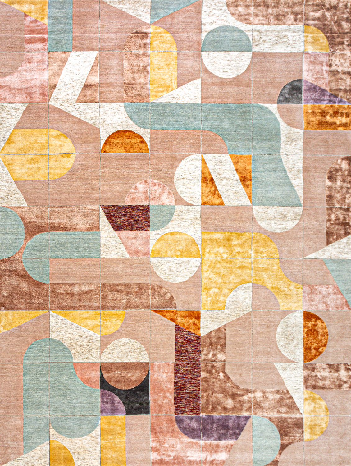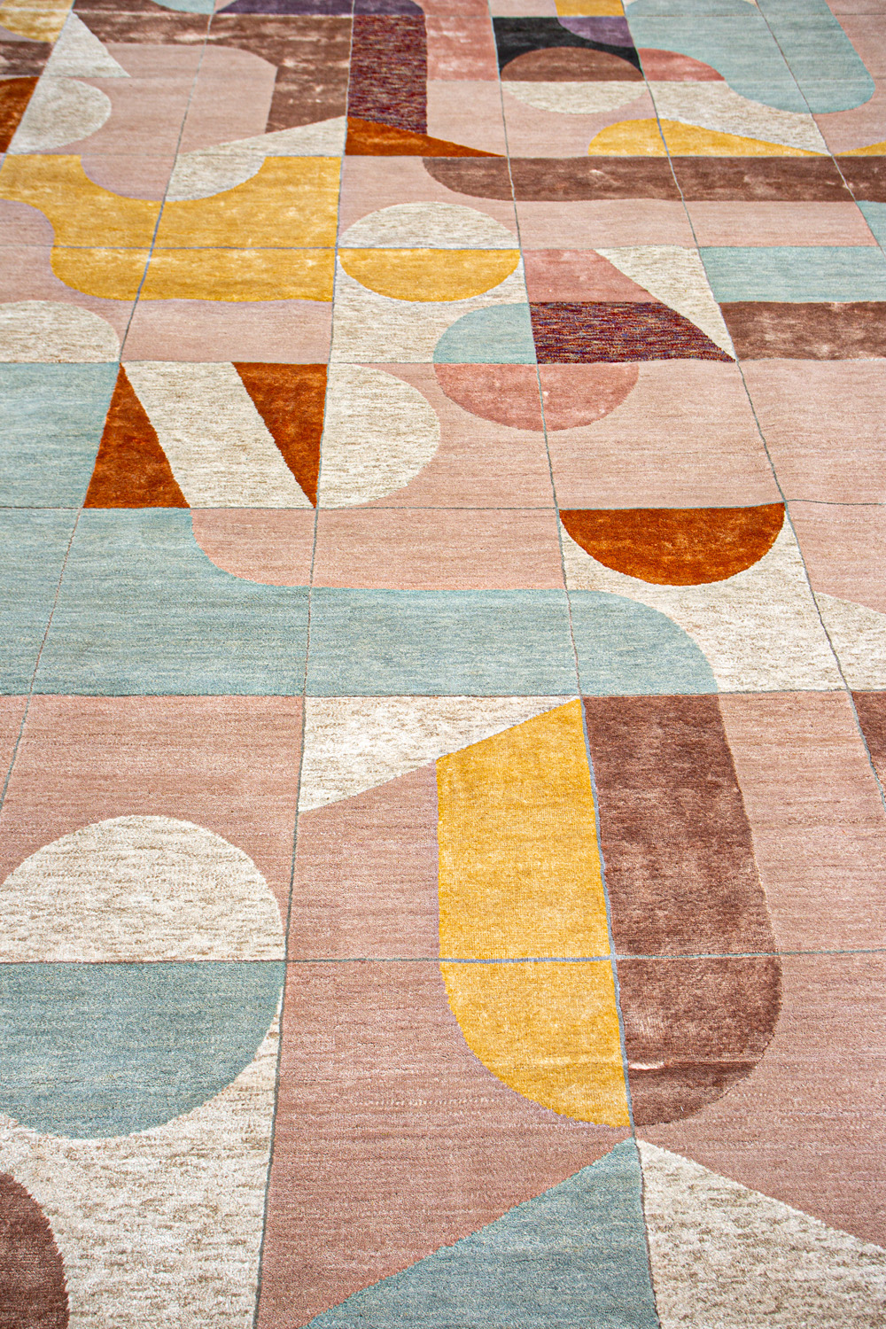Крупные рисунки в виде линий и фигур на фактурной поверхности ковра превращаются в выразительные композиции. Они акцентируют на себе внимание и добавляют динамики в современный интерьер. Комбинации разных фигур и повторяющийся орнамент задают ритмическую основу пространству, привносят в него оригинальные оптические иллюзии.