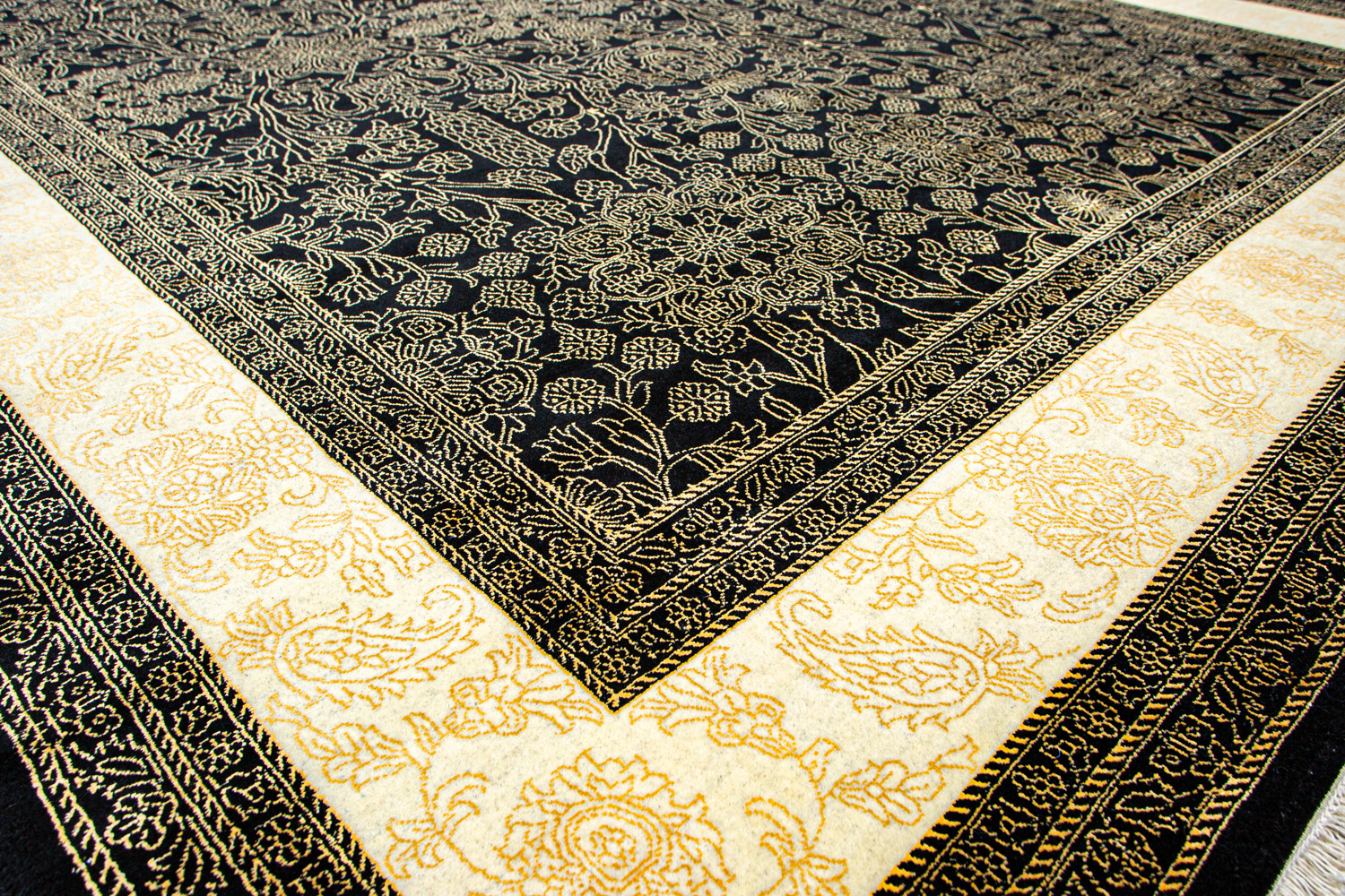 Каждый ковер в этой коллекции соткан вручную из шерсти и арт шёлка опытными индийскими мастерами.