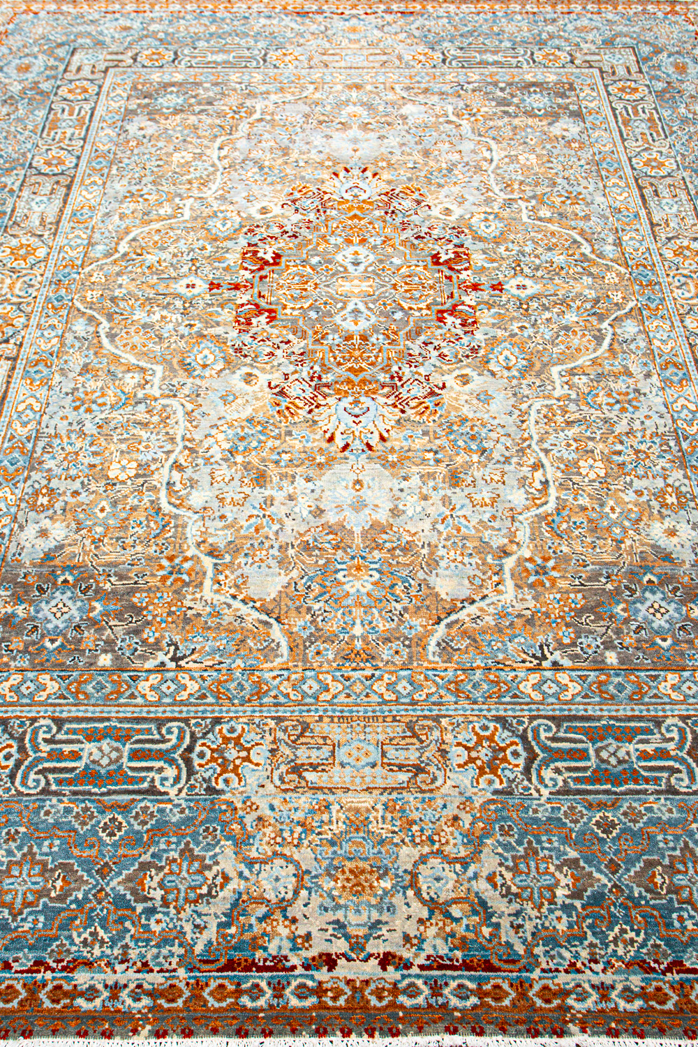 Родина этих ковров Индия и Пакистан. Чтобы создать такое произведение искусства у мастеров уходит от одного года до двух лет. Плотность ковров, в зависимости от размера, составляет от 150 000 до 400 000 узлов на квадратный метр.