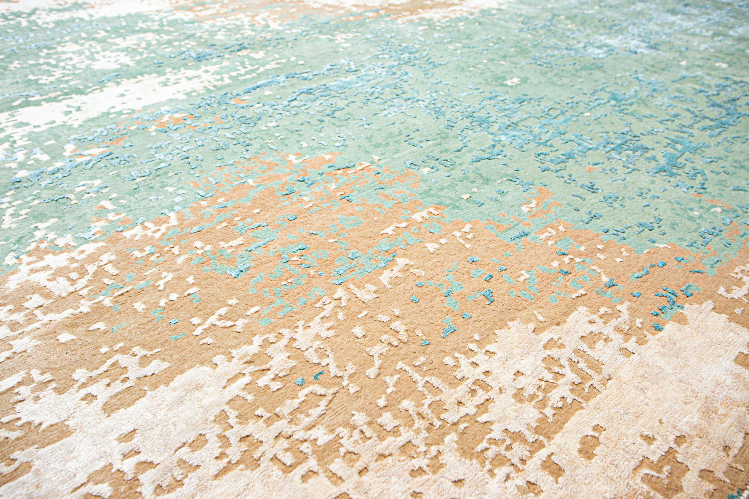Дизайн ковров напоминает современные полотна художников-абстракционистов и производит столь же яркое и незабываемое впечатление в интерьере. Живописный эффект и необычная фактура зависят от выбора материала: натуральной шерсти, шёлка и от их сочетаний друг с другом. Ковры ткутся вручную в лучших мастерских Индии и Пакистана.
