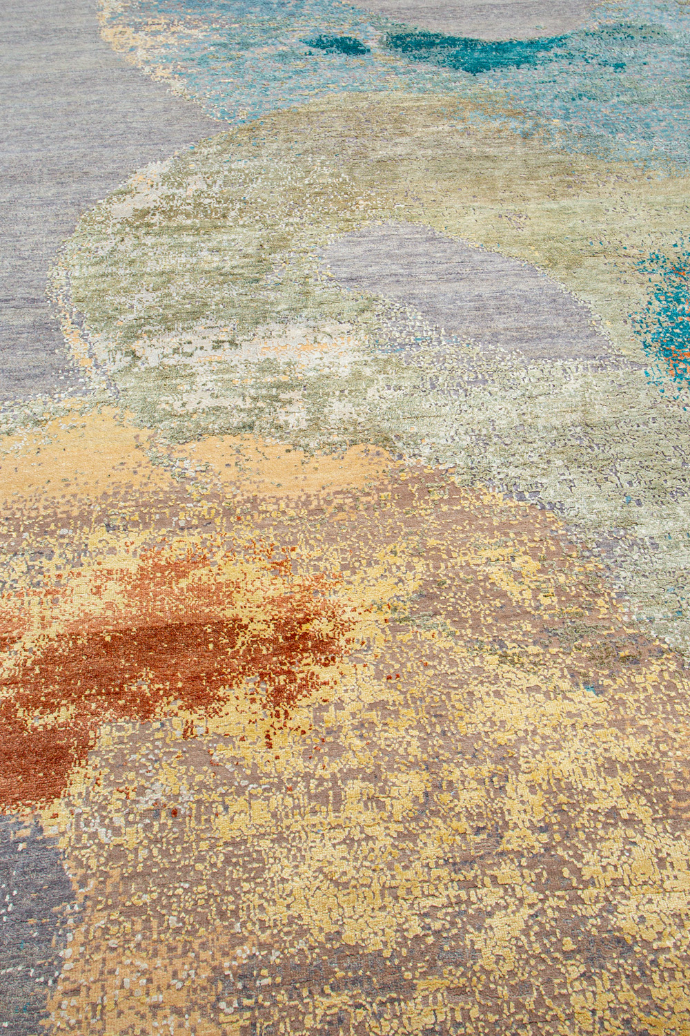 Дизайн ковров напоминает современные полотна художников-абстракционистов и производит столь же яркое и незабываемое впечатление в интерьере. Живописный эффект и необычная фактура зависят от выбора материала: натуральной шерсти, шёлка и от их сочетаний друг с другом. Ковры ткутся вручную в лучших мастерских Индии и Пакистана.