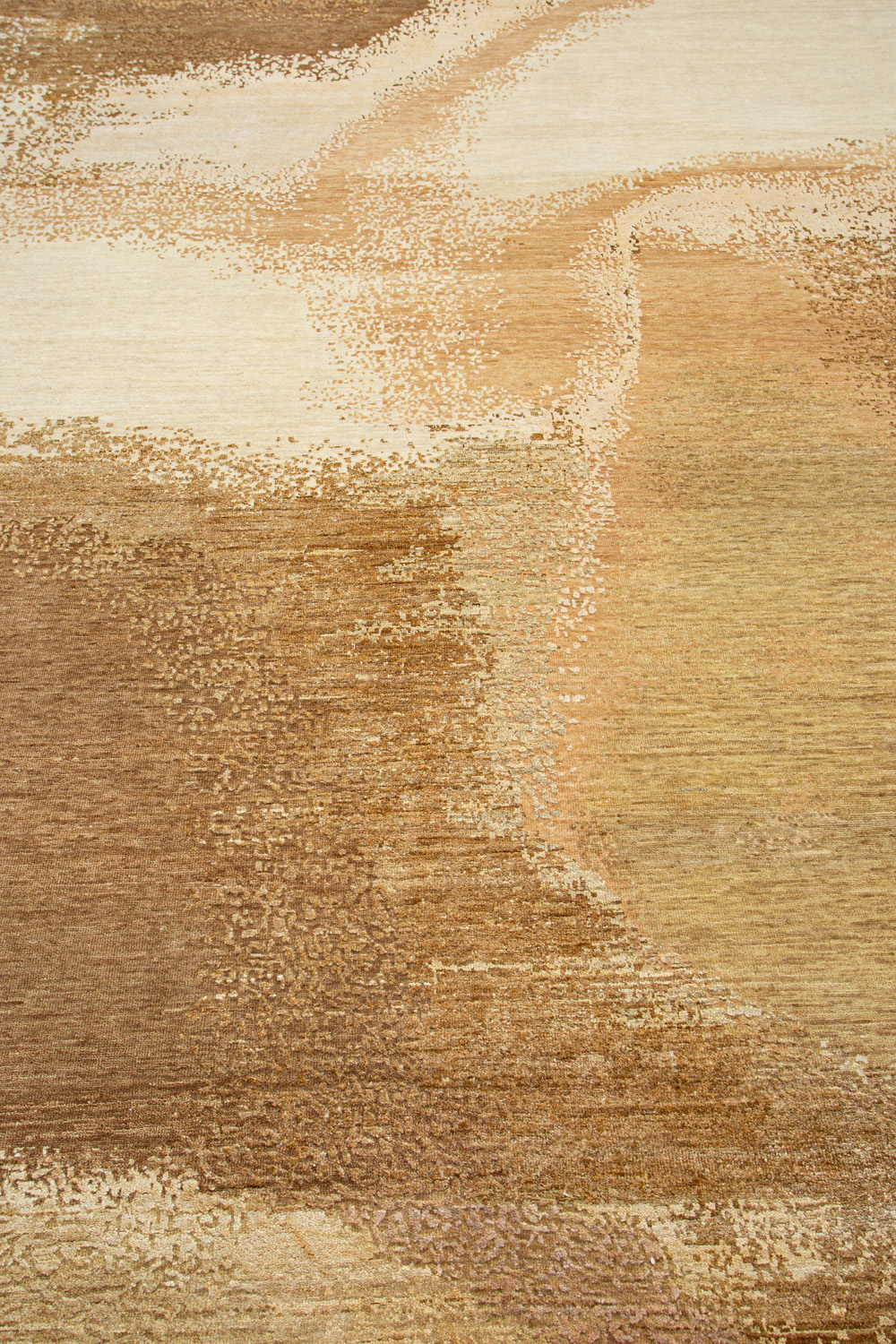 Дизайн ковров напоминает современные полотна художников-абстракционистов и производит столь же яркое и незабываемое впечатление в интерьере. Живописный эффект и необычная фактура зависят от выбора материала: натуральной шерсти, шёлка и от их сочетаний друг с другом. Ковры ткутся вручную в лучших мастерских Индии и Пакистана.