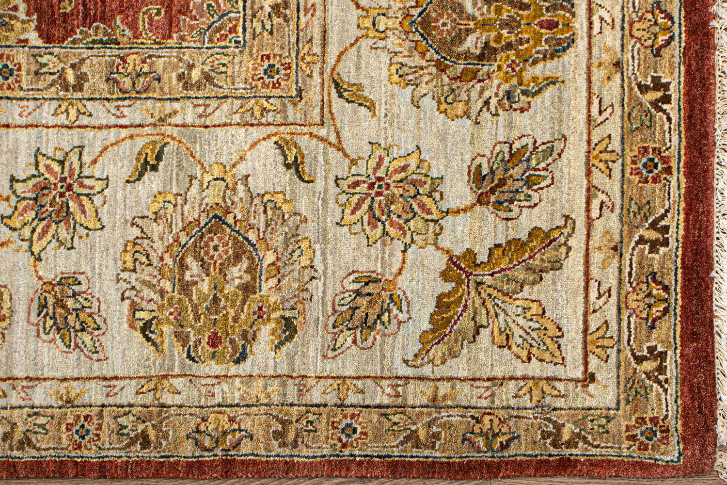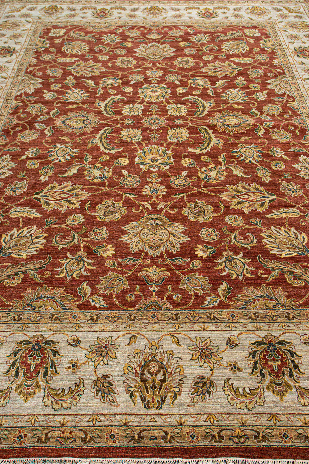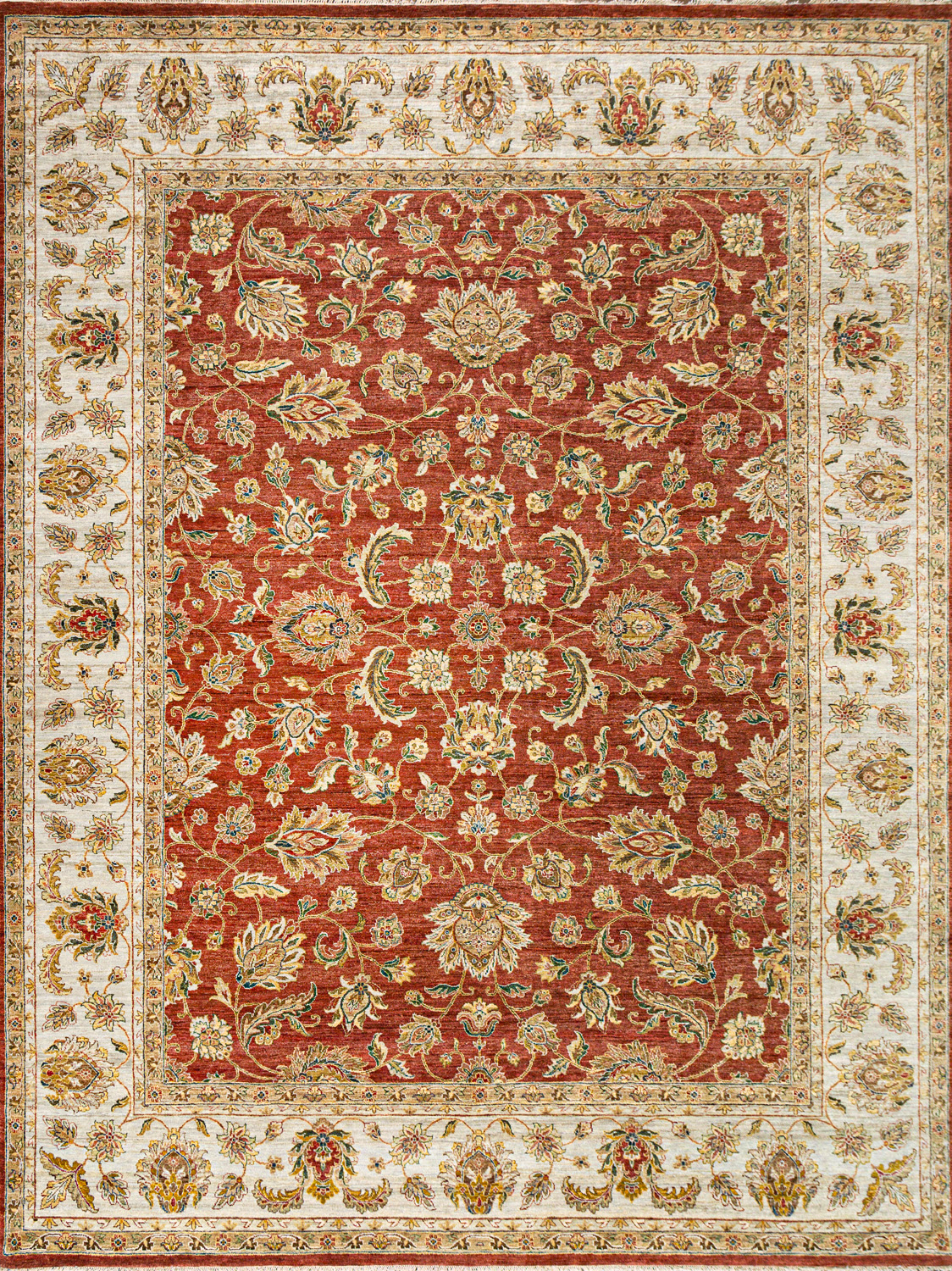 Более пяти веков назад в городе Агра зародилась знаменитая индийская школа ковроткачества, прославившаяся не меньше, чем расположенный здесь же Тадж-Махал. Мощное персидское влияние, помноженное на местный колорит, привело к появлению оригинальных орнаментов с богатыми растительными узорами — причудливым цветам, ветвям и листьям, разбросанным по всему полю ковра.