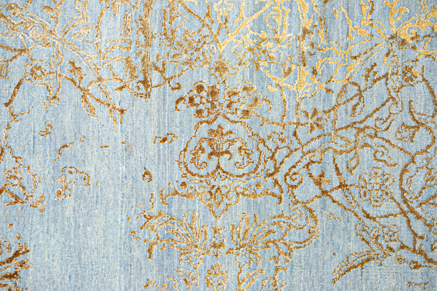 Такой эффект достигается за счет специальной техники плетения, а также обработки, которой подвергают ковры, чтобы они выглядели как антикварные — то есть дорого, элегантно и модно.