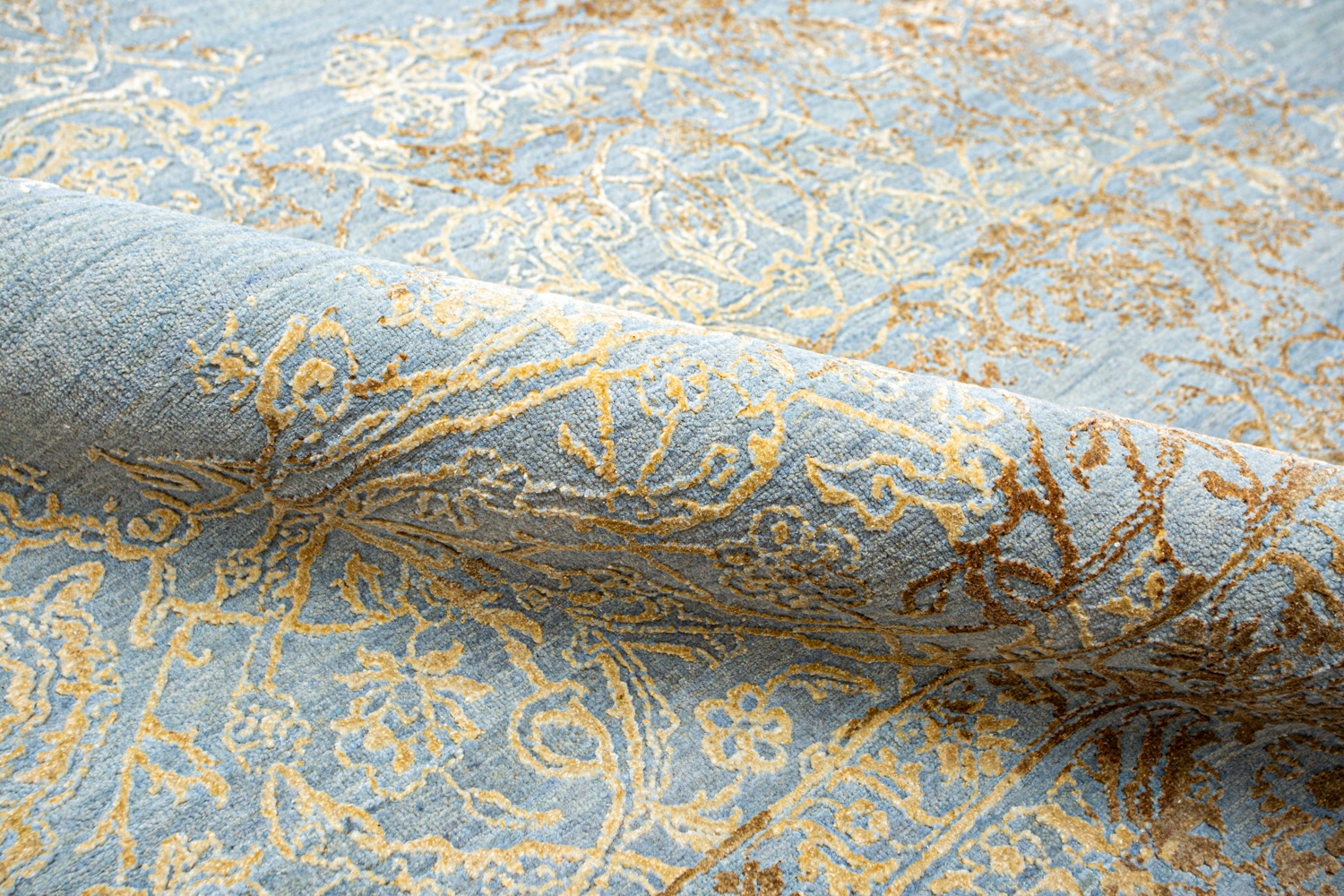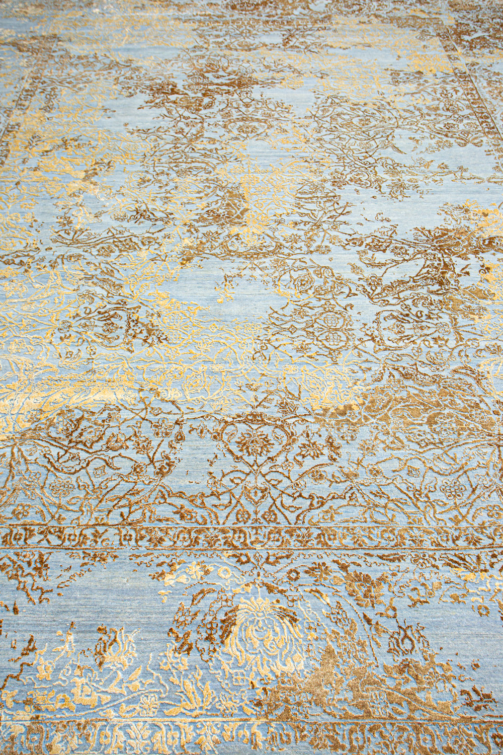 Такой эффект достигается за счет специальной техники плетения, а также обработки, которой подвергают ковры, чтобы они выглядели как антикварные — то есть дорого, элегантно и модно.