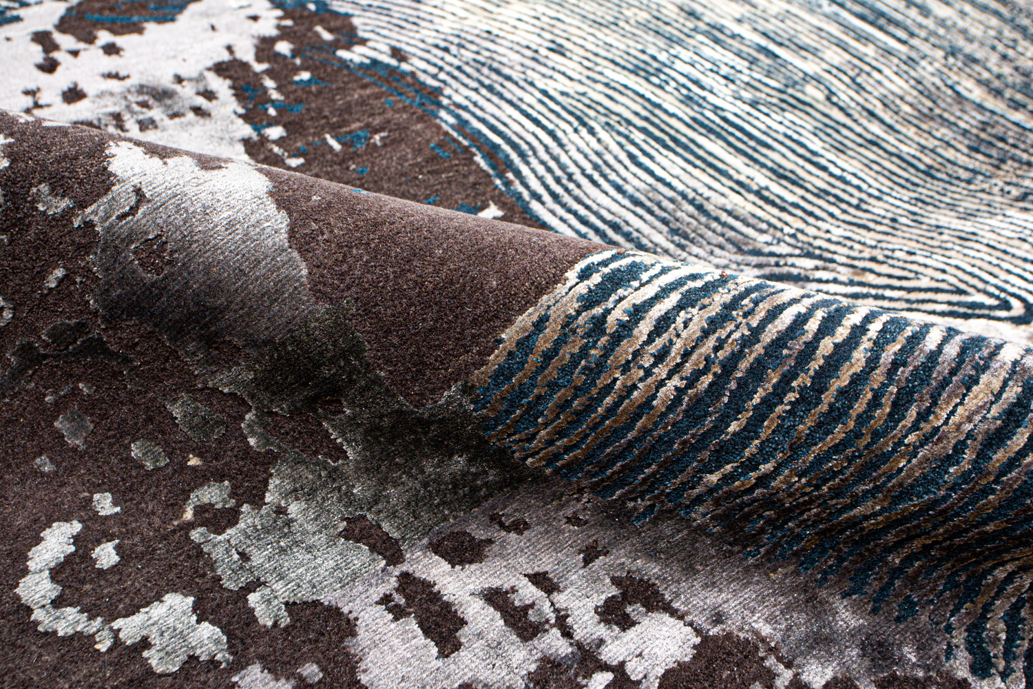 Дизайн ковров напоминает современные полотна художников-абстракционистов и производит столь же яркое и незабываемое впечатление в интерьере. Живописный эффект и необычная фактура зависят от выбора материала: натуральной шерсти, шёлка и от их сочетаний друг с другом. Ковры ткутся вручную в лучших мастерских Индии и Пакистана.