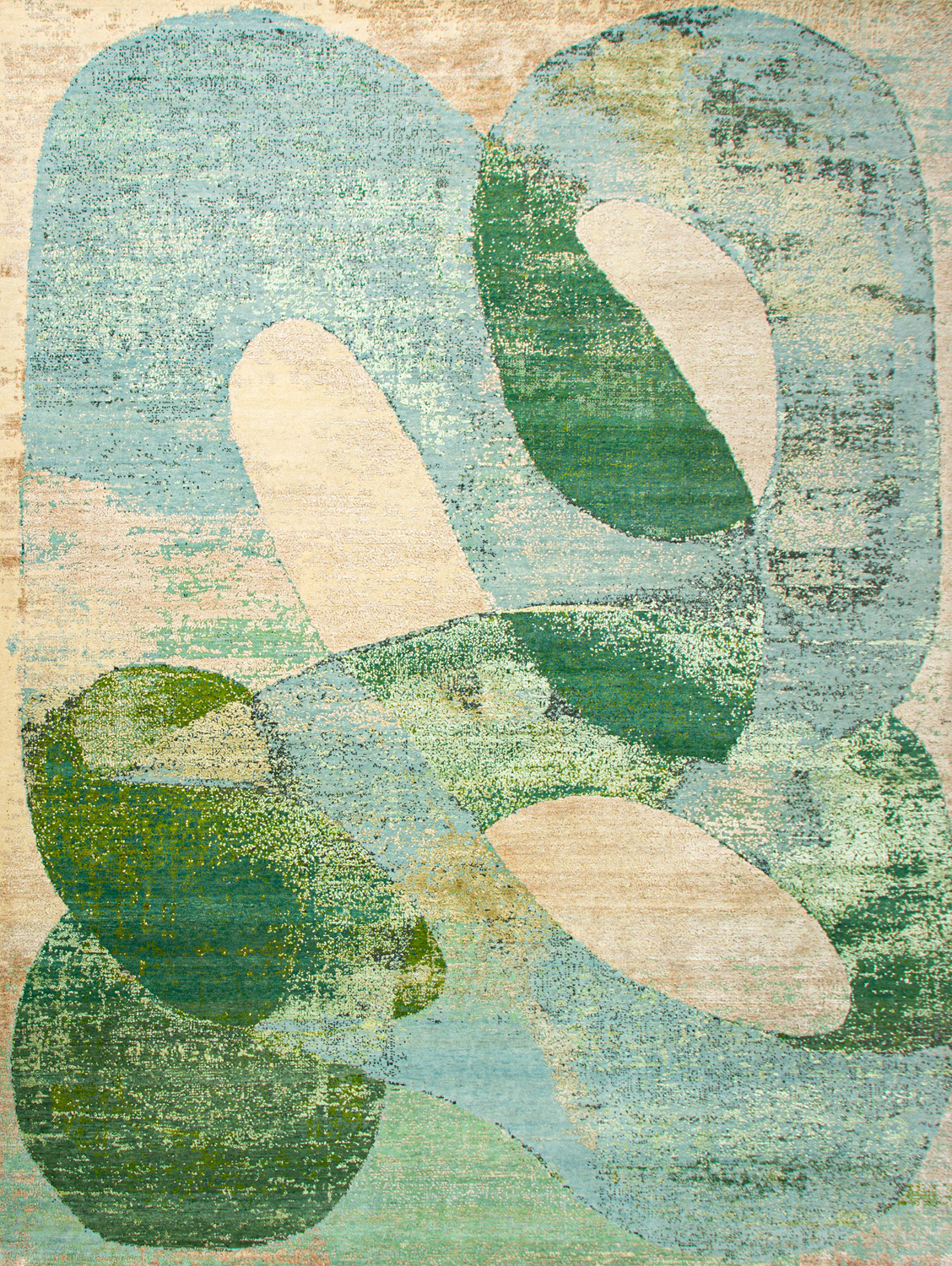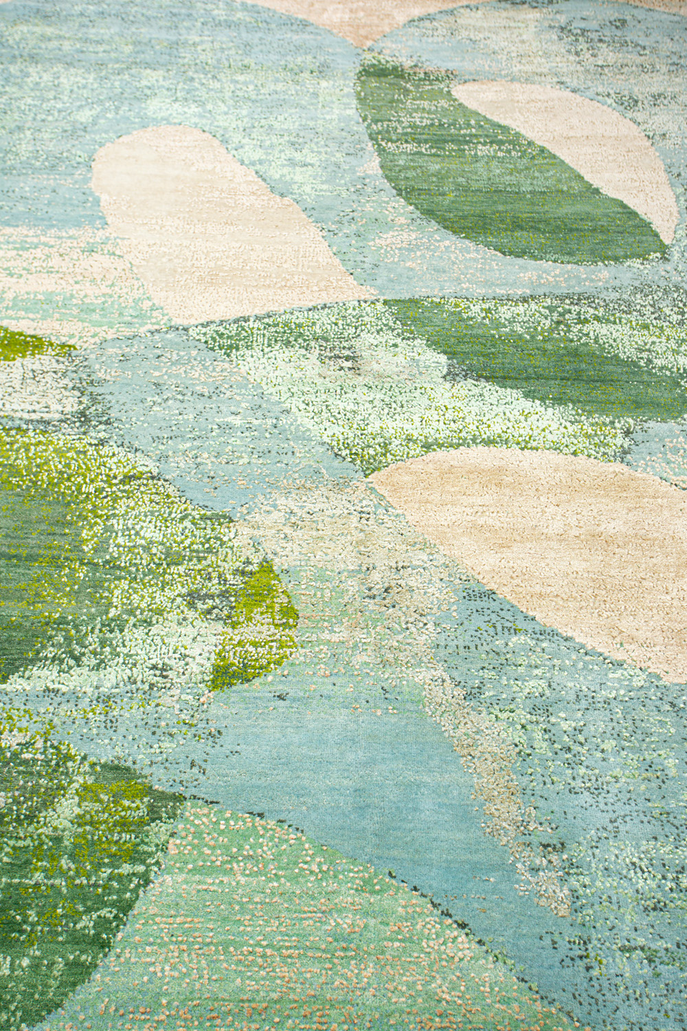 Дизайн ковров напоминает современные полотна художников-абстракционистов и производит столь же яркое и незабываемое впечатление в интерьере. Живописный эффект и необычная фактура зависят от выбора материала: натуральной шерсти, шёлка и от их сочетаний друг с другом. Ковры ткутся вручную в лучших мастерских Индии и Пакистана.