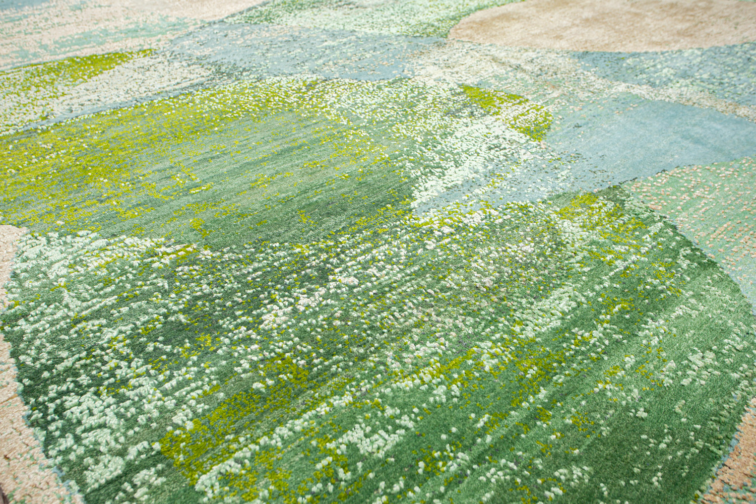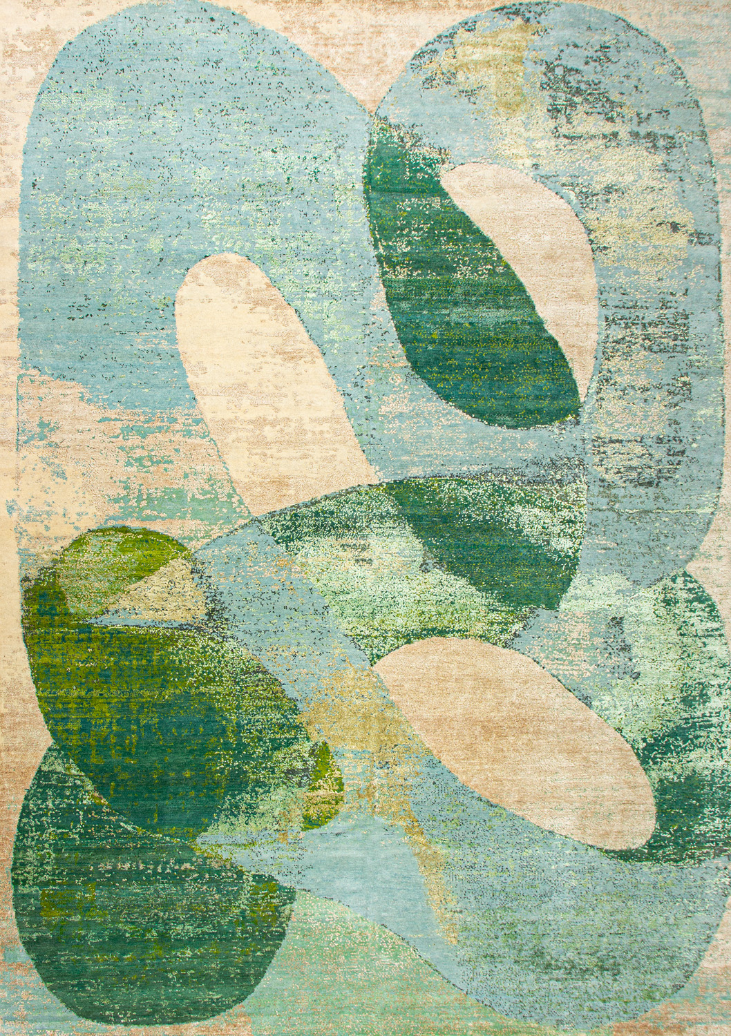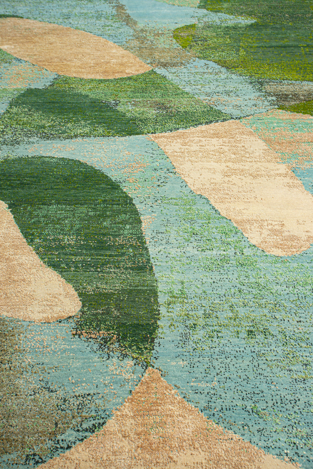 Дизайн ковров напоминает современные полотна художников-абстракционистов и производит столь же яркое и незабываемое впечатление в интерьере. Живописный эффект и необычная фактура зависят от выбора материала: натуральной шерсти, шёлка и от их сочетаний друг с другом. Ковры ткутся вручную в лучших мастерских Индии и Пакистана.