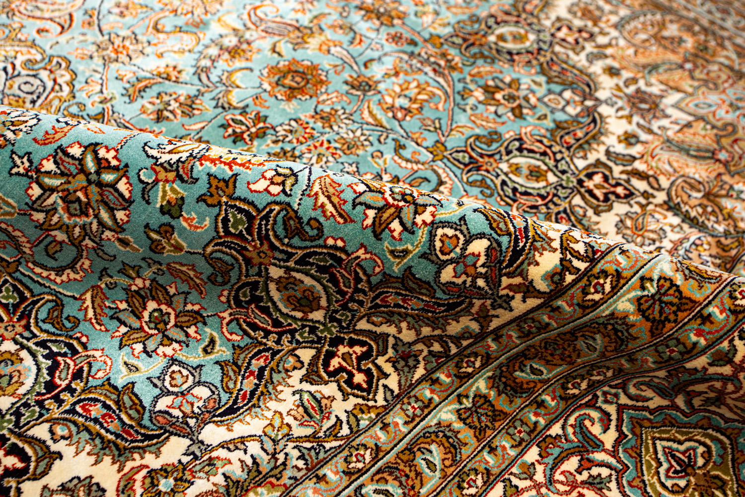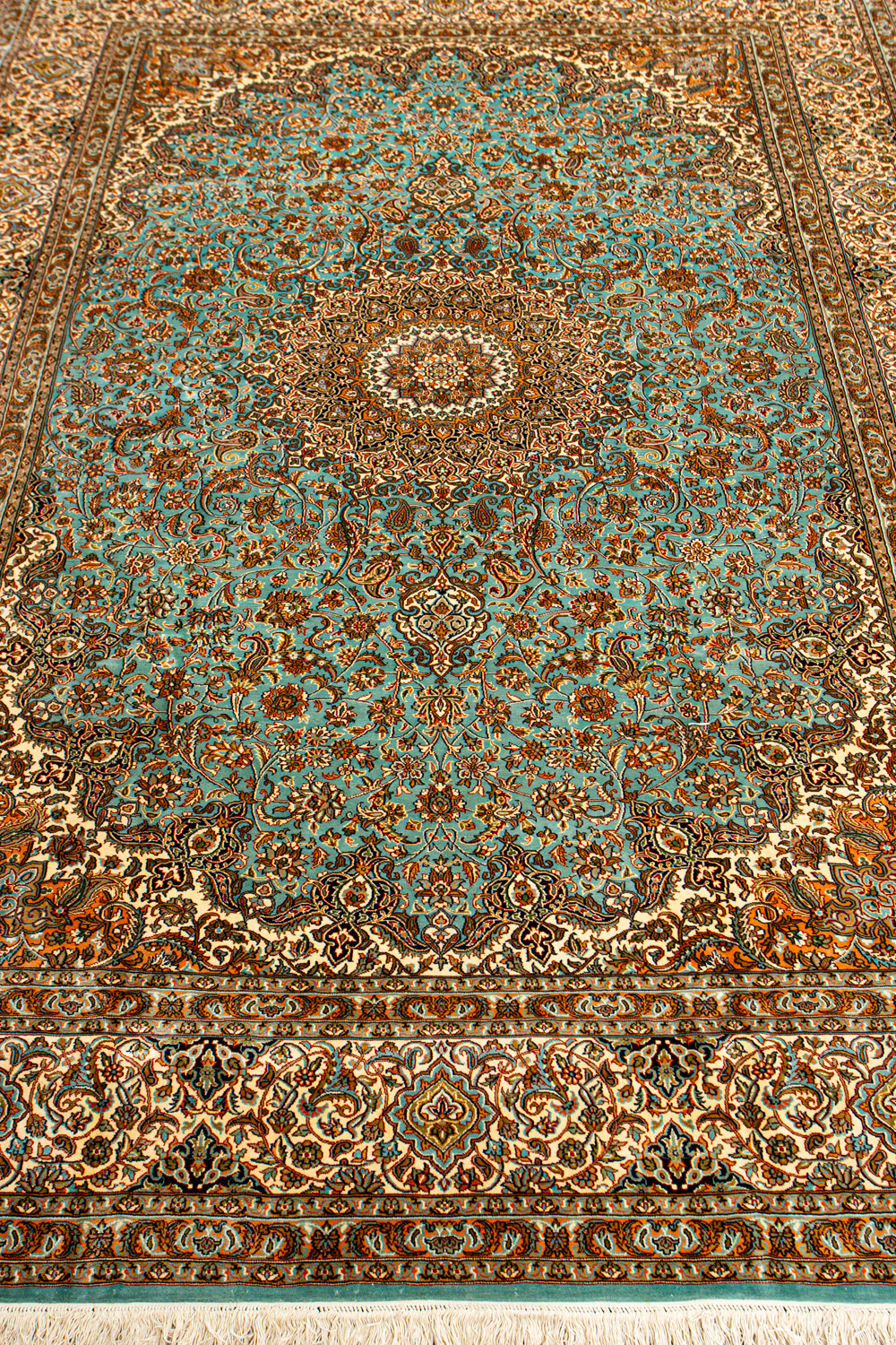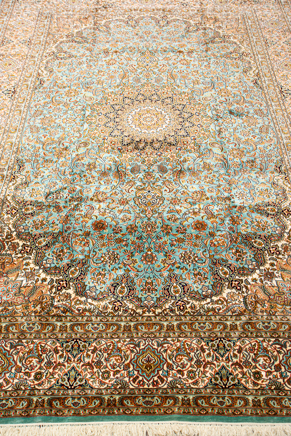 Ковры из коллекции Кашмир ткутся по традиционной технологии из нежнейшего кашмирского шелка. Лучшие произведения индийских мастеров отличает высокая узелковая плотность, прочность и яркость цветов.
