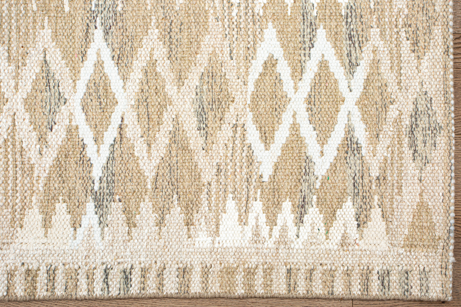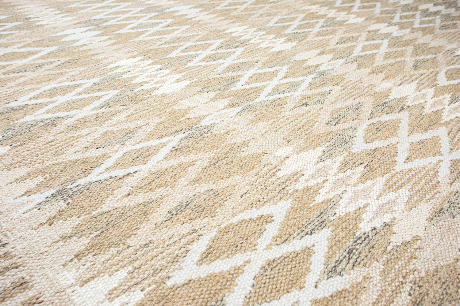 Узор ковров из коллекции Килим создаётся взаимодействием нитей утока и нитей основы, благодаря чему получается геометрический узор.