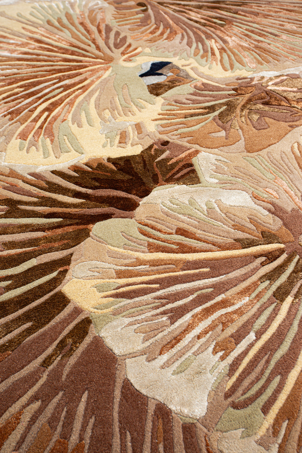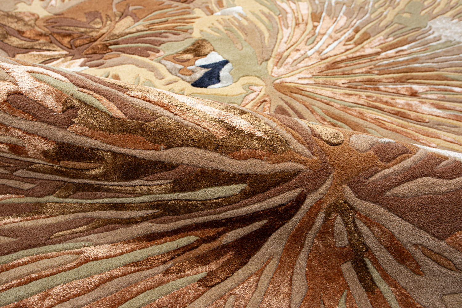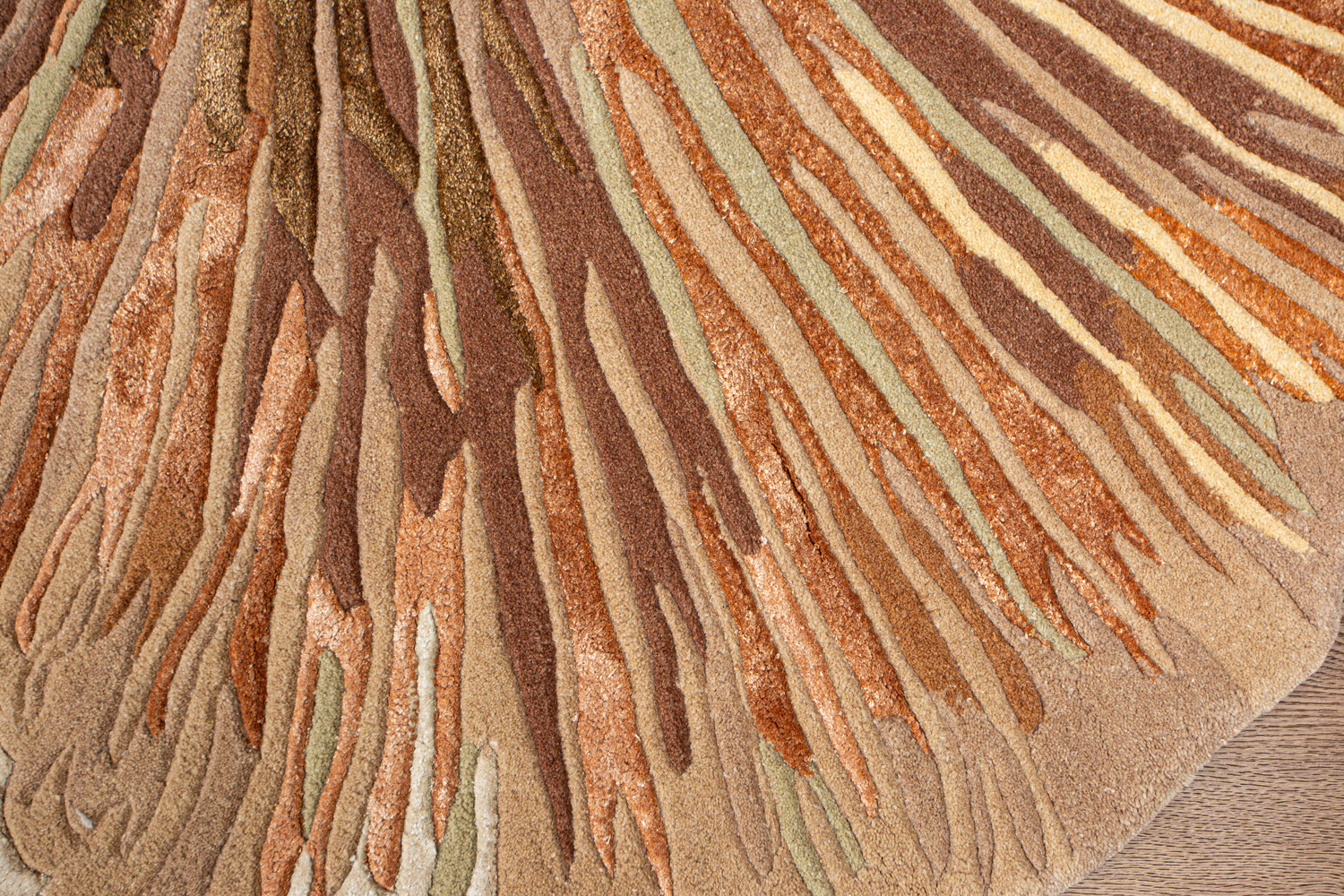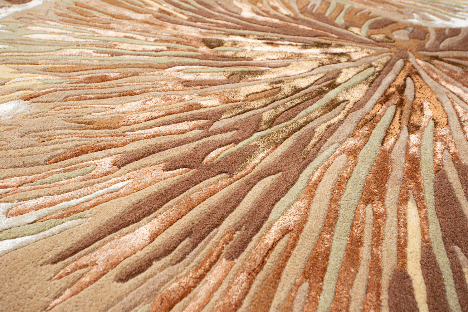 Ковры изготовлены методом ручного тафтинга. Эта технология позволяет создавать объемный рисунок и мягкие переходы цвета. Почитатели коллекции Shine ценят богатую фактуру ковров в сочетании с натуральными материалами и превосходной техникой в исполнении индийских мастеров.