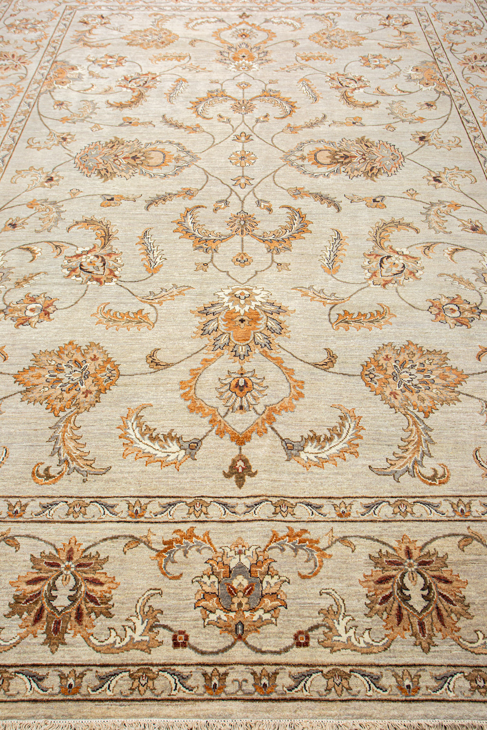 Более пяти веков назад в городе Агра зародилась знаменитая индийская школа ковроткачества, прославившаяся не меньше, чем расположенный здесь же Тадж-Махал. Мощное персидское влияние, помноженное на местный колорит, привело к появлению оригинальных орнаментов с богатыми растительными узорами — причудливым цветам, ветвям и листьям, разбросанным по всему полю ковра.