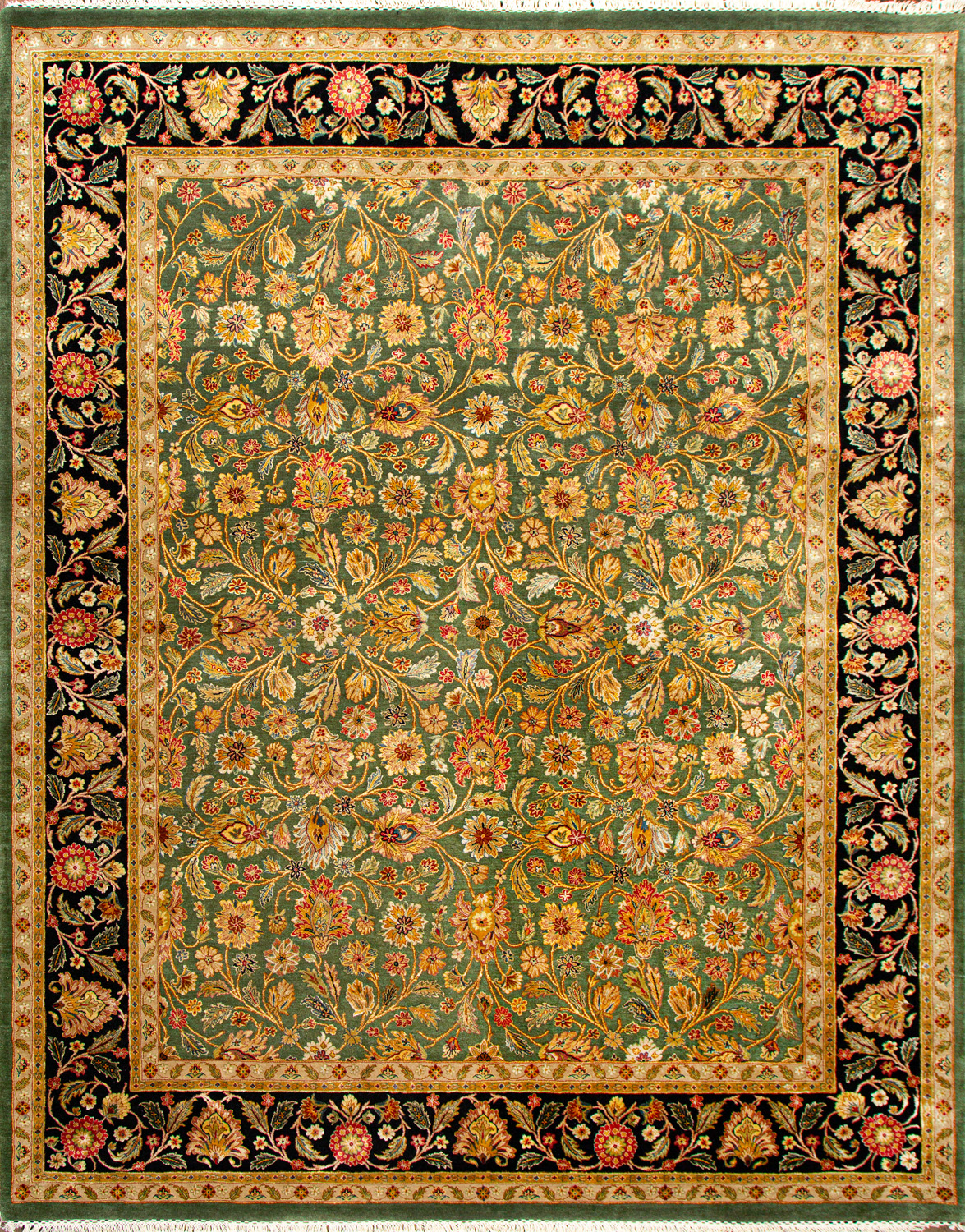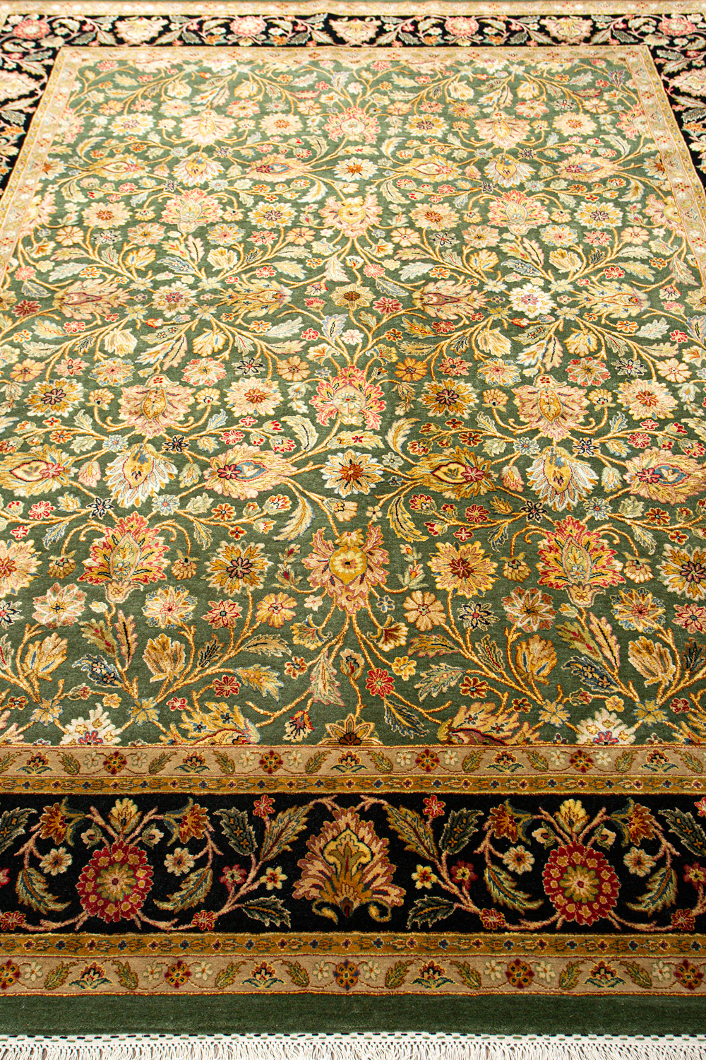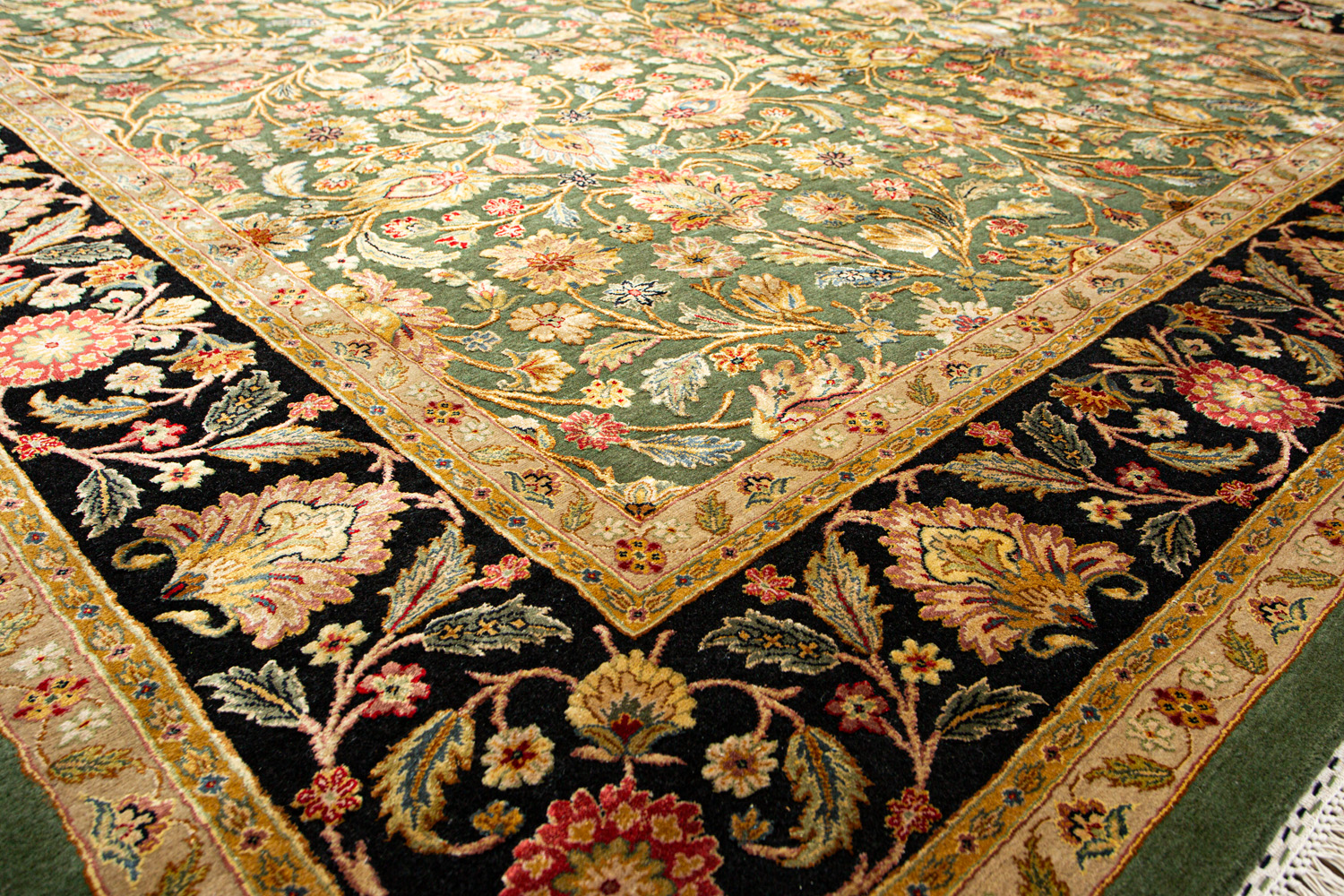 Более пяти веков назад в городе Агра зародилась знаменитая индийская школа ковроткачества, прославившаяся не меньше, чем расположенный здесь же Тадж-Махал. Мощное персидское влияние, помноженное на местный колорит, привело к появлению оригинальных орнаментов с богатыми растительными узорами — причудливым цветам, ветвям и листьям, разбросанным по всему полю ковра.