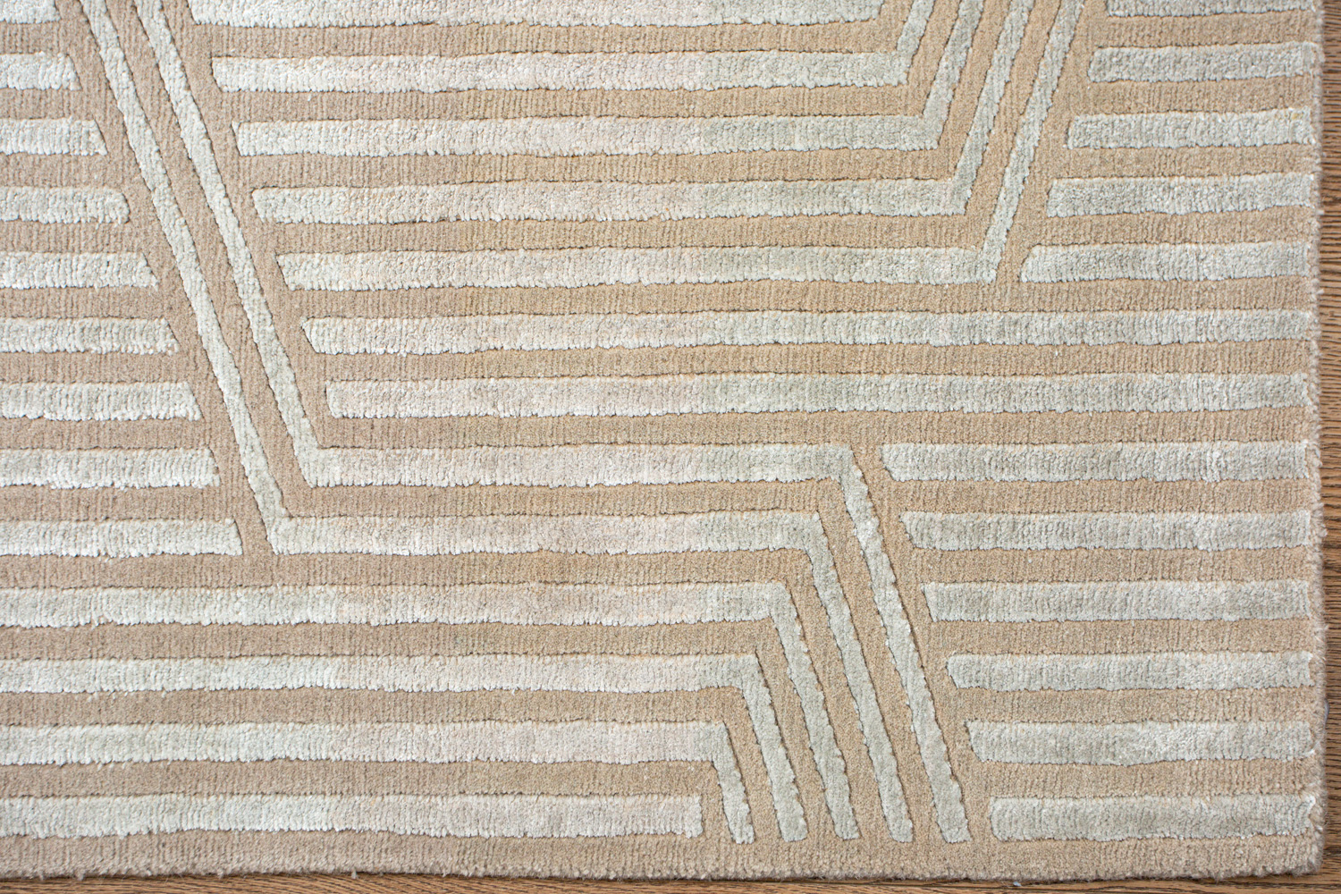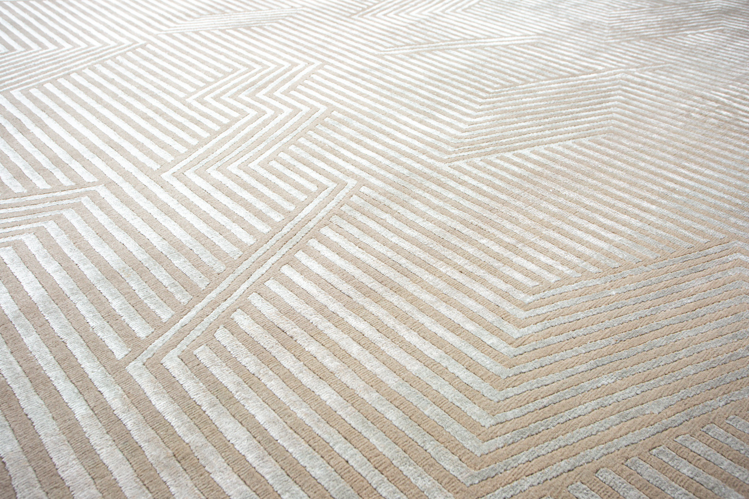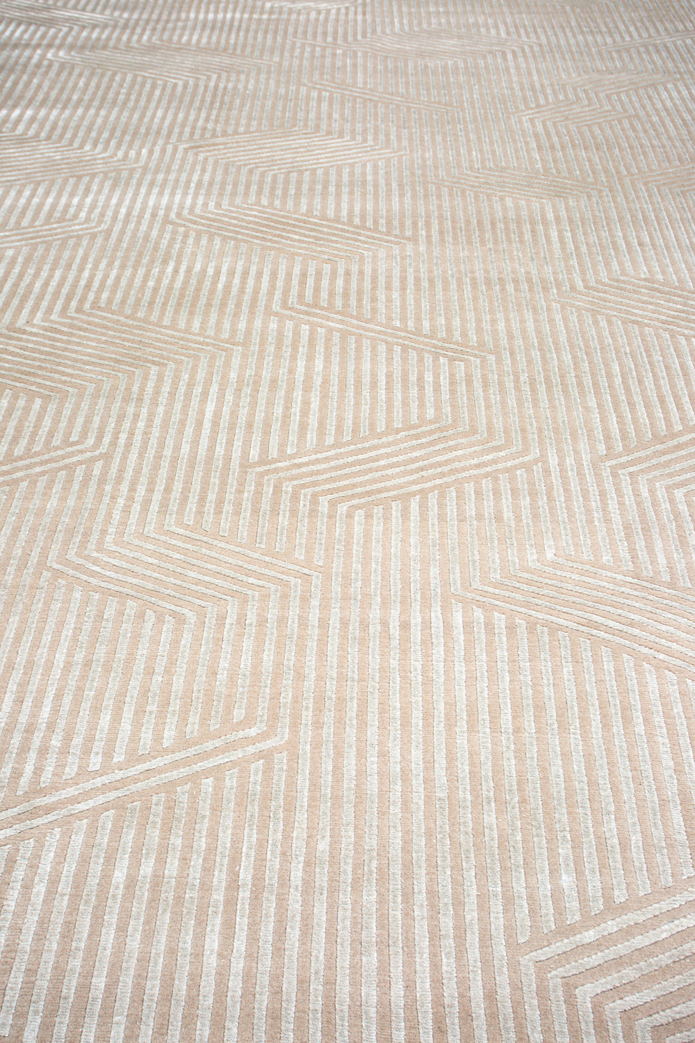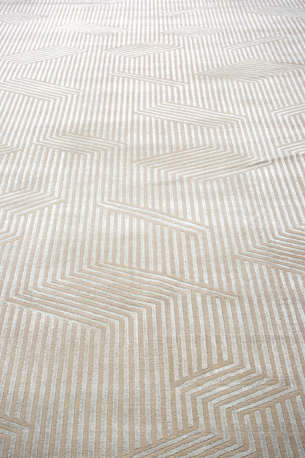 Крупные рисунки в виде линий и фигур на фактурной поверхности ковра превращаются в выразительные композиции. Они акцентируют на себе внимание и добавляют динамики в современный интерьер. Комбинации разных фигур и повторяющийся орнамент задают ритмическую основу пространству, привносят в него оригинальные оптические иллюзии.