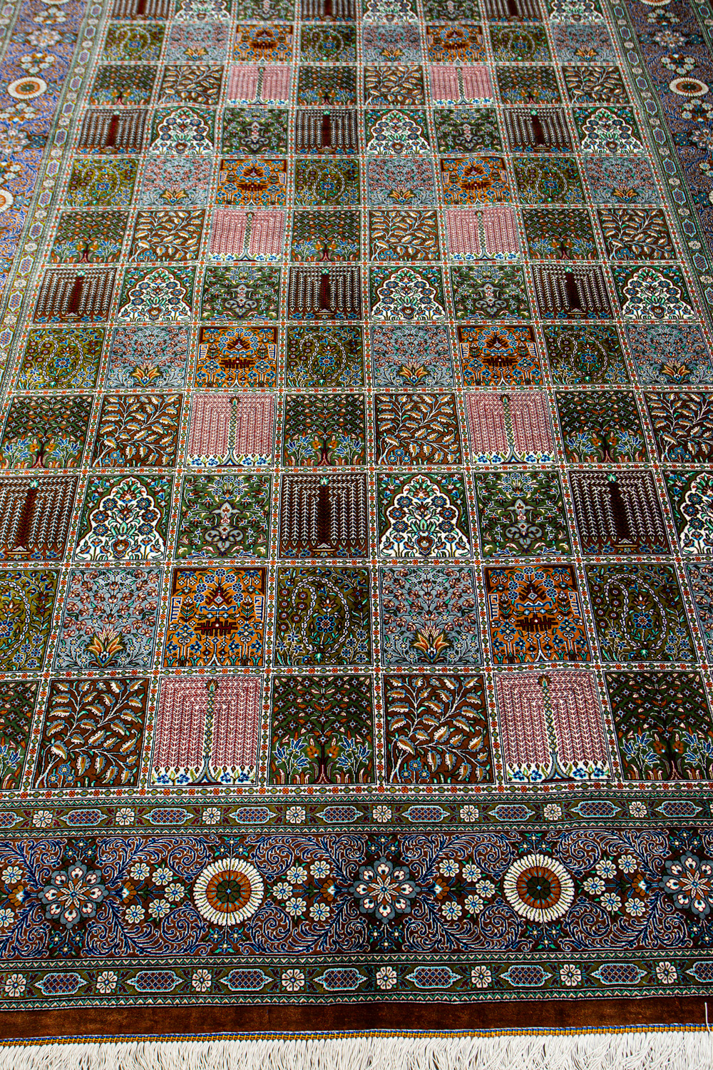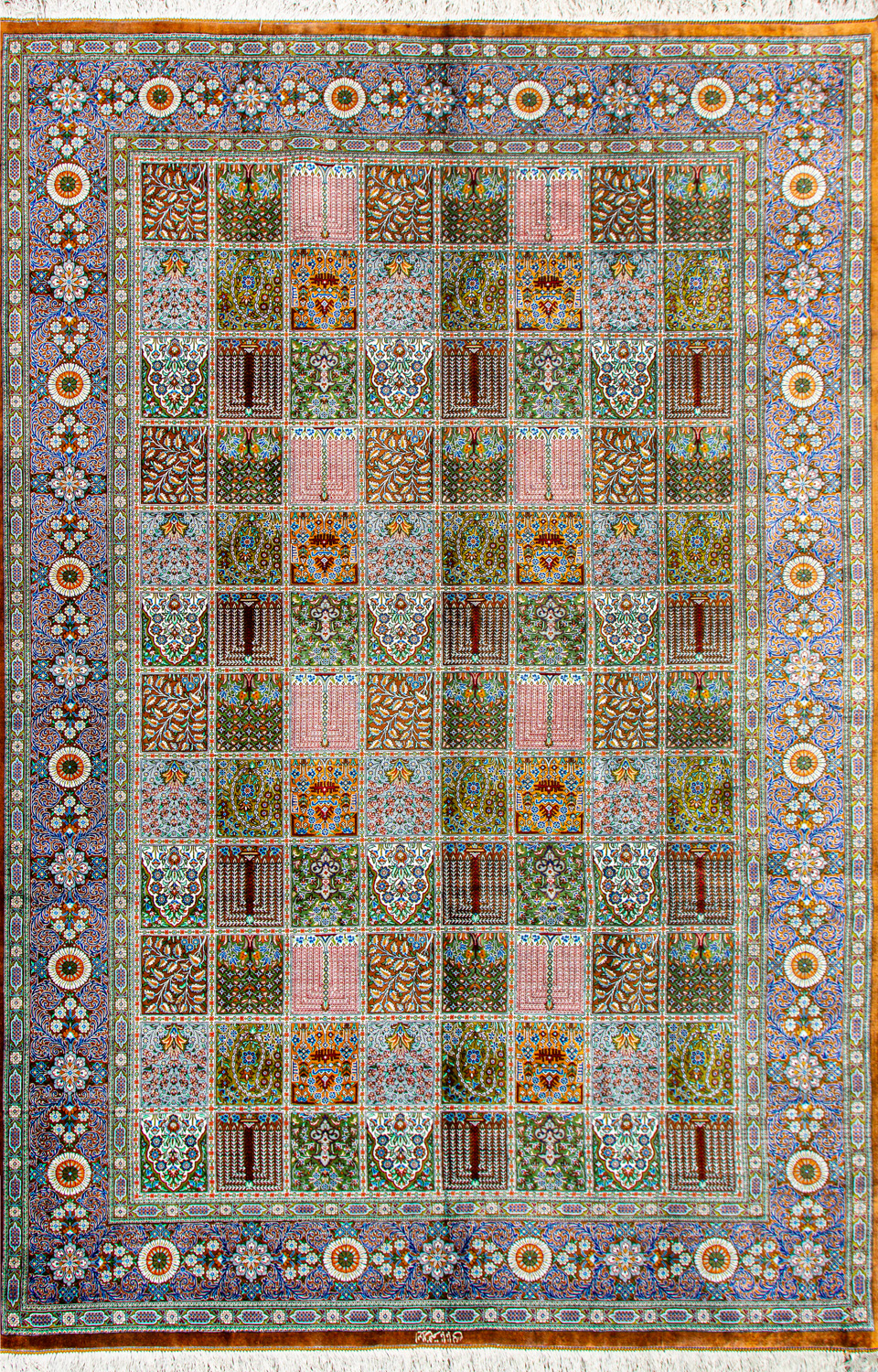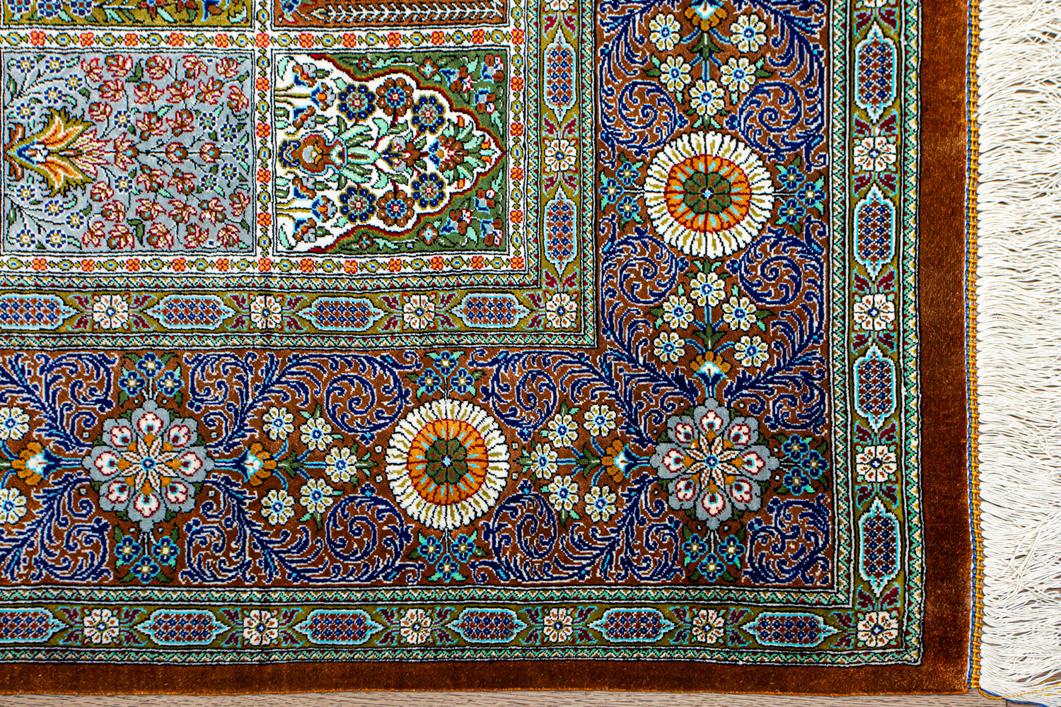 Шёлковая нить гибкая и прочная, поэтому ковры из этого материала считаются самыми износостойкими, а по количеству цветов в одном узоре ковры из коллекции Кум, пожалуй, остаются непревзойдёнными.