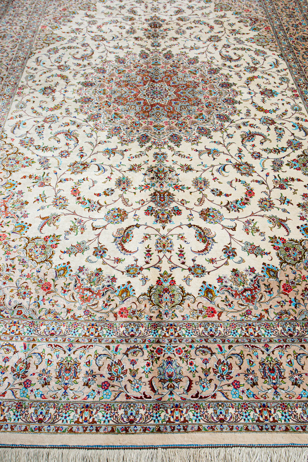 Шёлковые ковры из коллекции Кашан — одни из самых элитных и дорогих ковров в мире. Ковры из 100% шелка ткутся с очень высокой плотностью, от 1 млн до 1,5 млн узелков на 1 кв м. Их отличает очень тонкий и четкий дизайн.