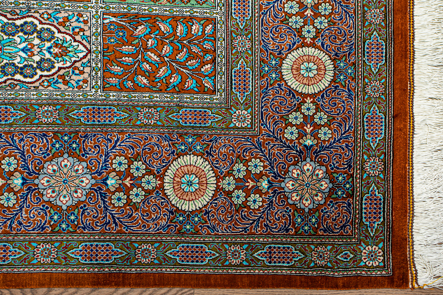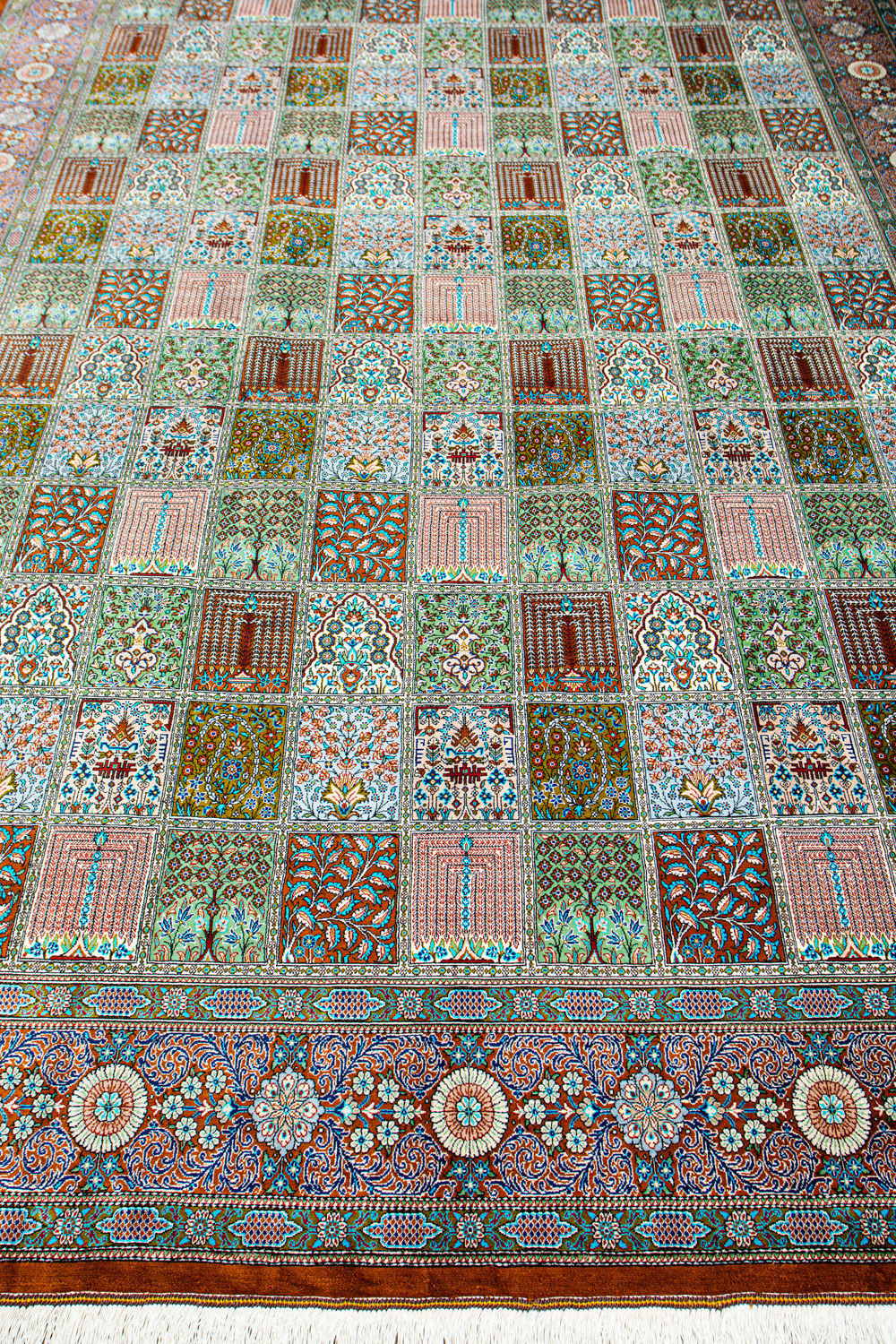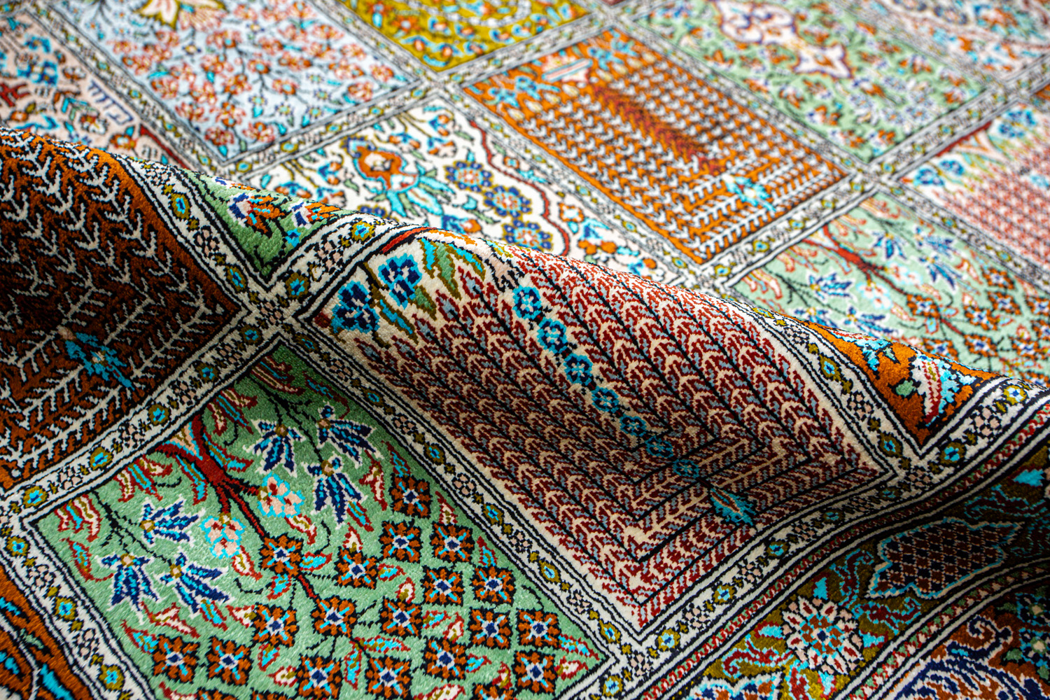 Шёлковая нить гибкая и прочная, поэтому ковры из этого материала считаются самыми износостойкими, а по количеству цветов в одном узоре ковры из коллекции Кум, пожалуй, остаются непревзойдёнными.