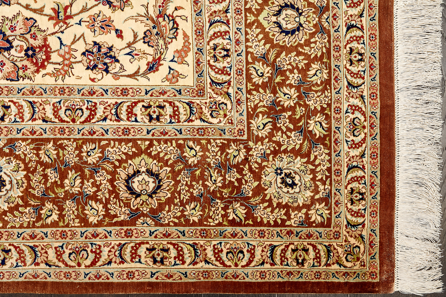Шёлковая нить гибкая и прочная, поэтому ковры из этого материала считаются самыми износостойкими, а по количеству цветов в одном узоре ковры из коллекции Кум, пожалуй, остаются непревзойдёнными.