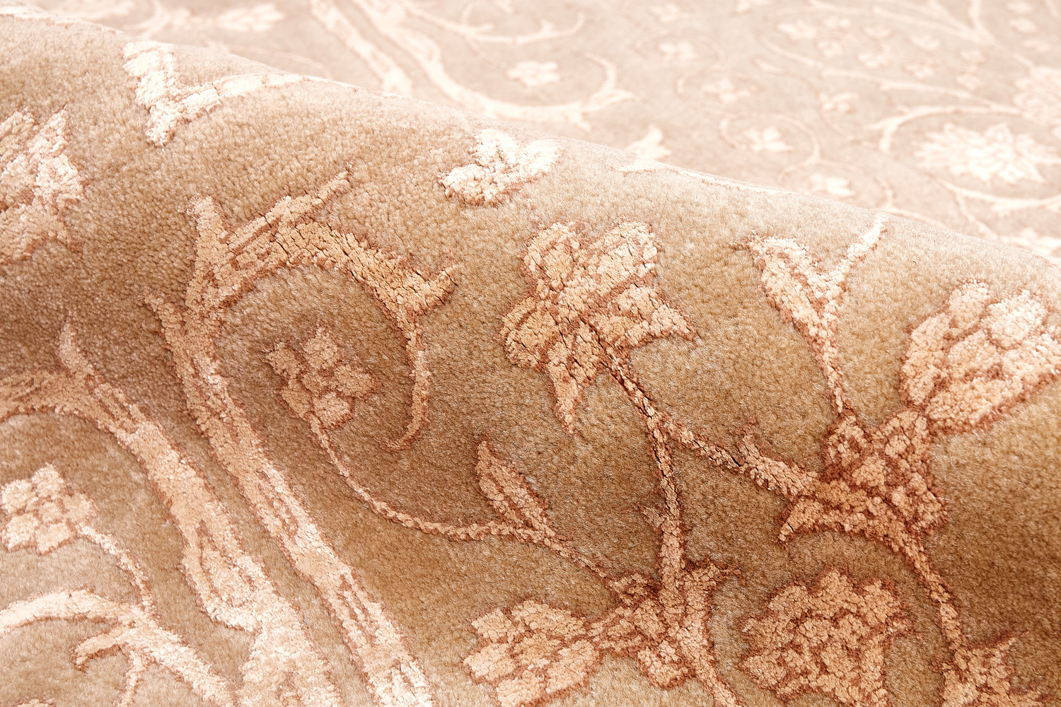 Каждый ковер в этой коллекции соткан вручную из шерсти и арт шёлка опытными индийскими мастерами.