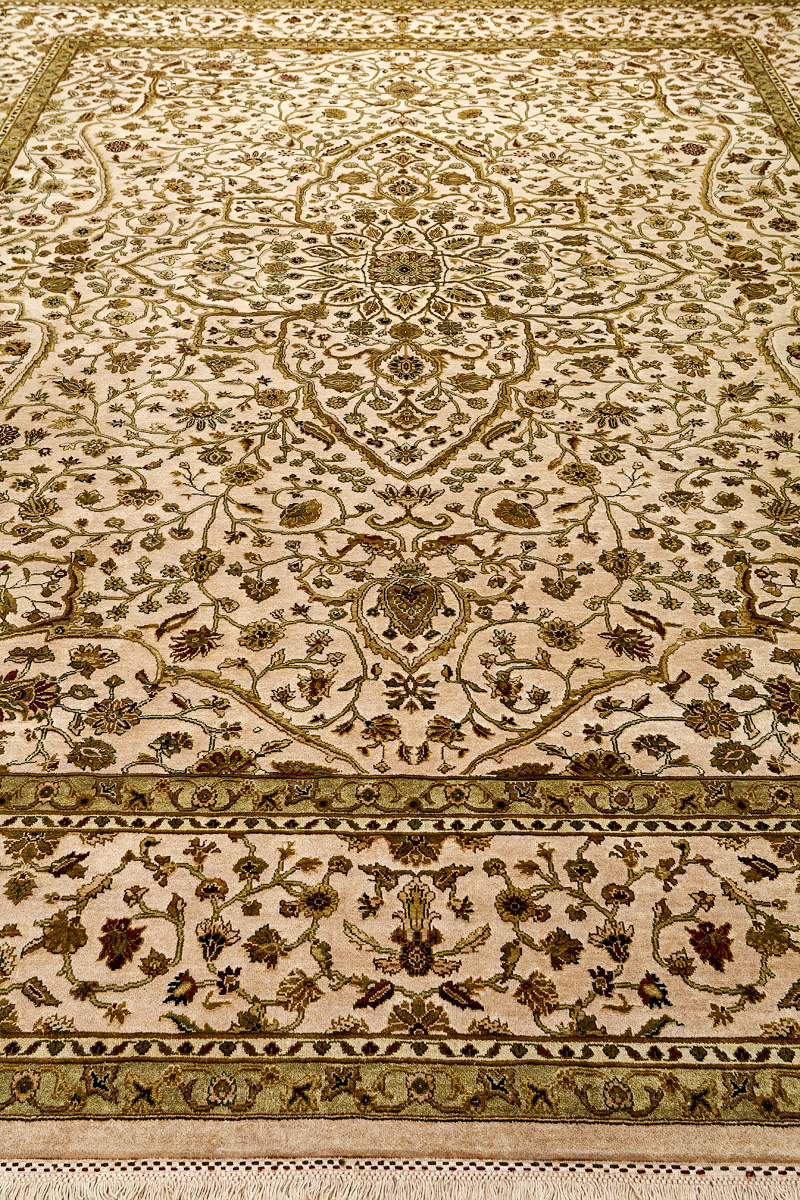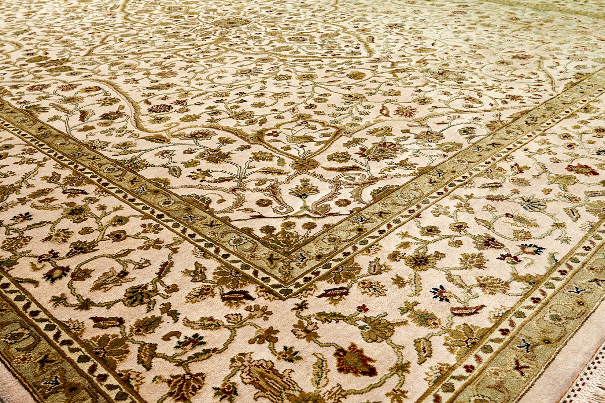 Более пяти веков назад в городе Агра зародилась знаменитая индийская школа ковроткачества, прославившаяся не меньше, чем расположенный здесь же Тадж-Махал. Мощное персидское влияние, помноженное на местный колорит, привело к появлению оригинальных орнаментов с богатыми растительными узорами — причудливым цветам, ветвям и листьям, разбросанным по всему полю ковра.