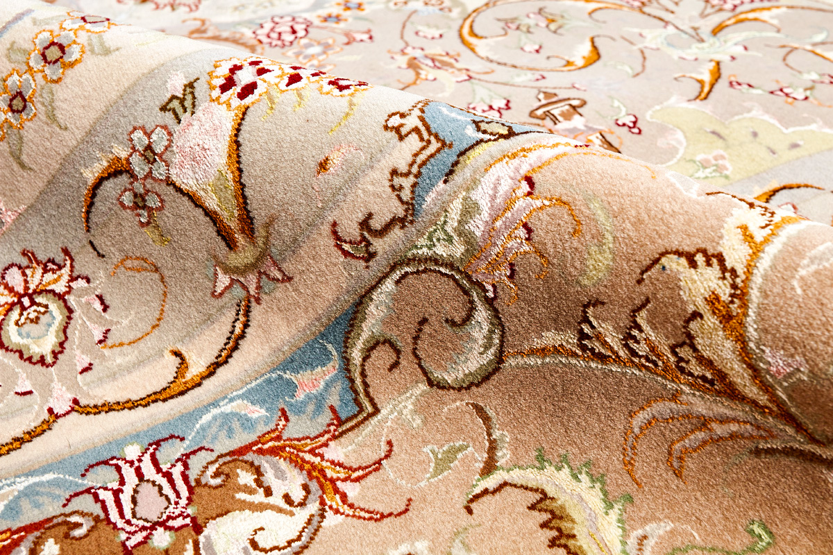 Ковры ткутся из шерсти и шёлка лучшими мастерами Ирана несколько лет, ведь обладают высочайшей плотностью для подобного состава ворса в 600 тысяч узлов на квадратный метр.
