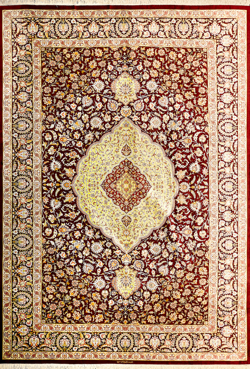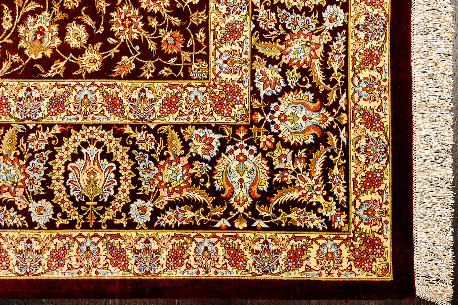 Шёлковая нить гибкая и прочная, поэтому ковры из этого материала считаются самыми износостойкими, а по количеству цветов в одном узоре ковры из коллекции Кум, пожалуй, остаются непревзойдёнными.