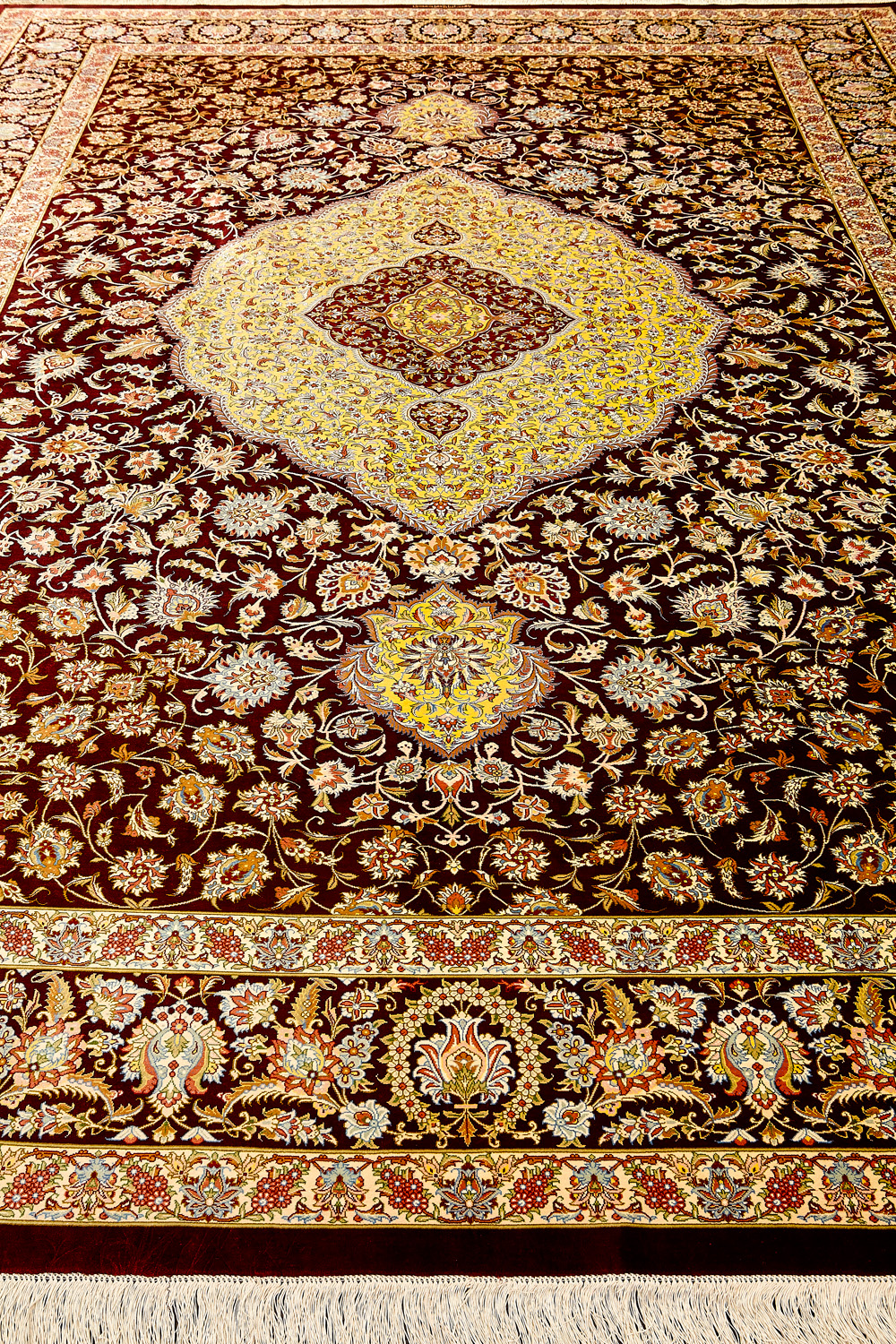 Детальные орнаменты, множество насыщенных оттенков, мягкость и нежность переливающегося шёлка стали отличительными чертами прекрасных ковров и обеспечили им мировую известность.