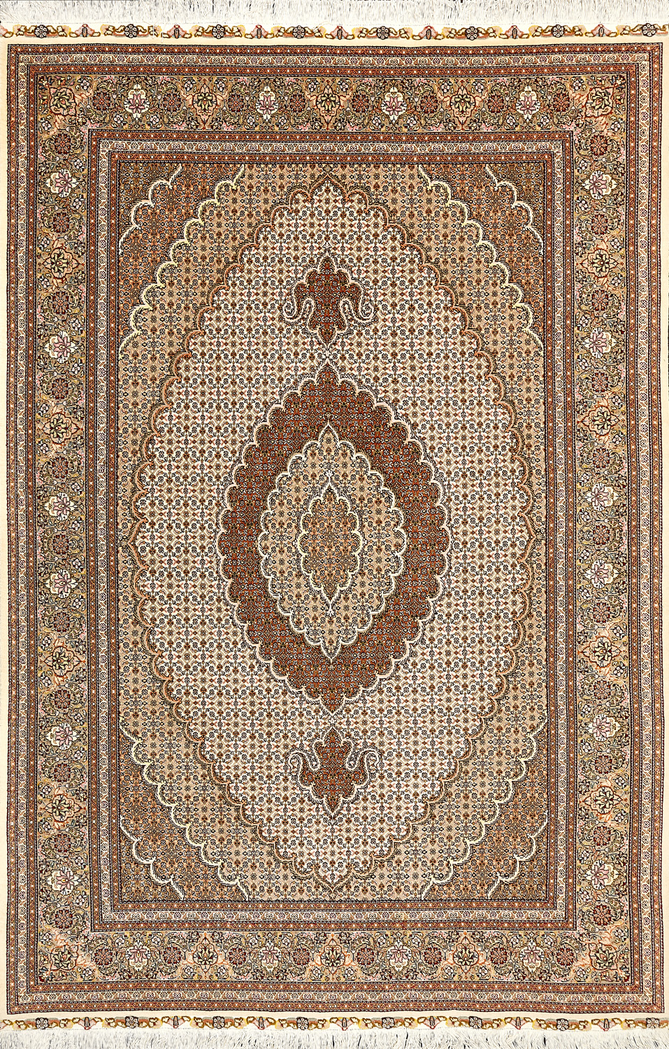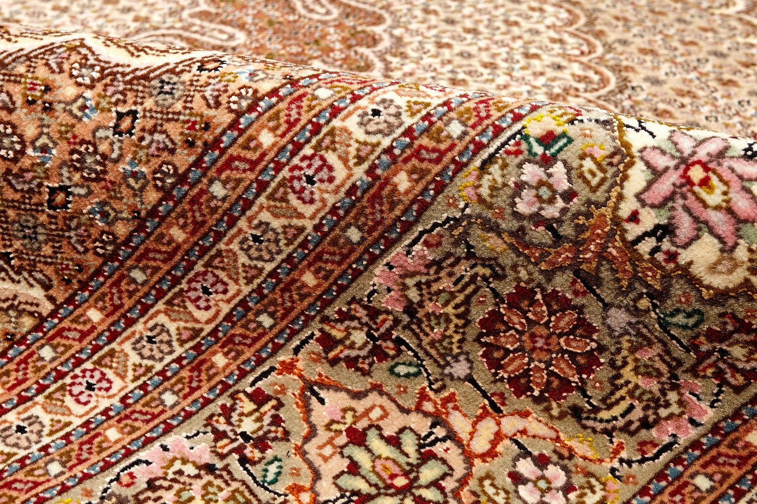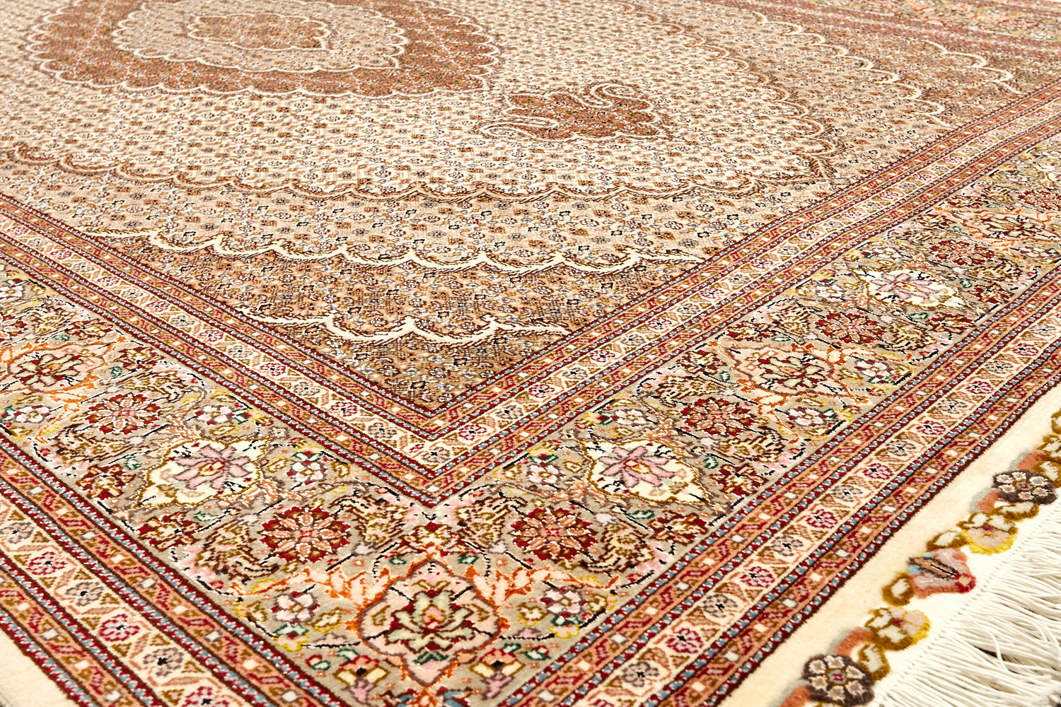 Рассыпанные по всему полю цветы, медальоны и «рыбная чешуя» — основные мотивы в дизайне ковров из коллекции Тебриз, а светлые тона и спокойные пастельные оттенки — основная цветовая палитра.