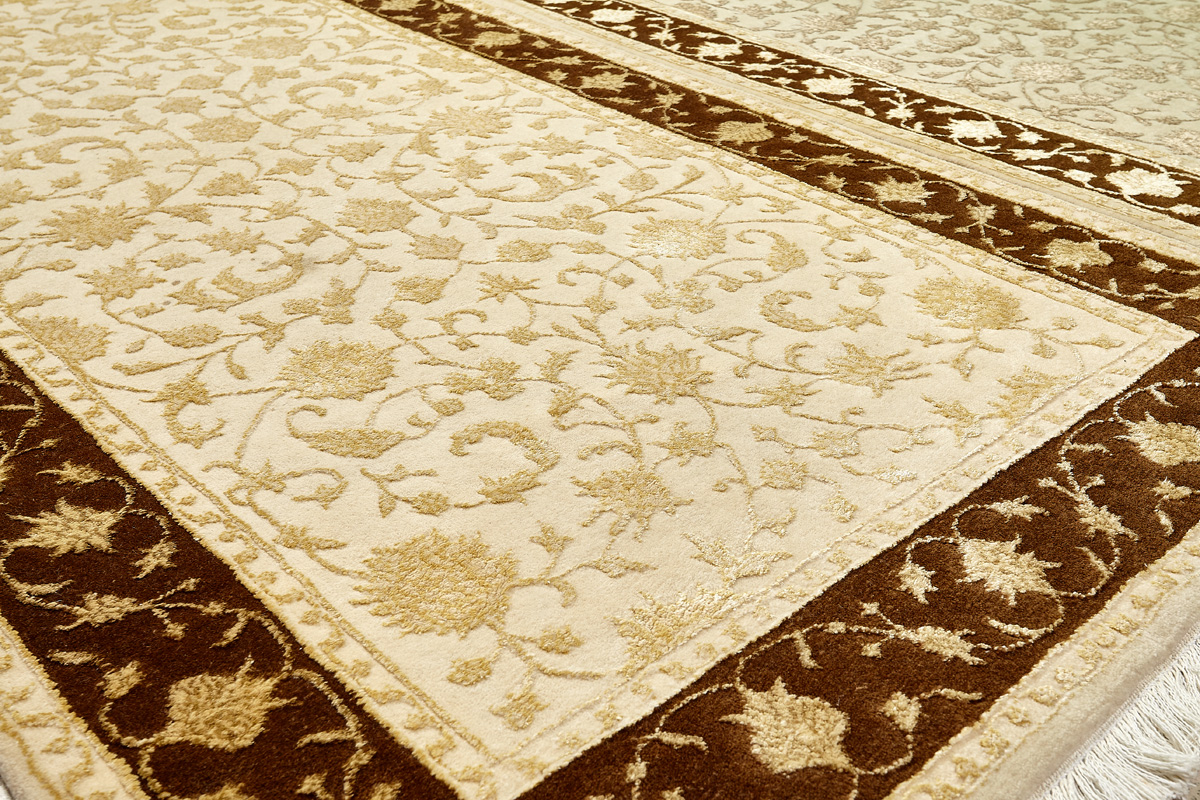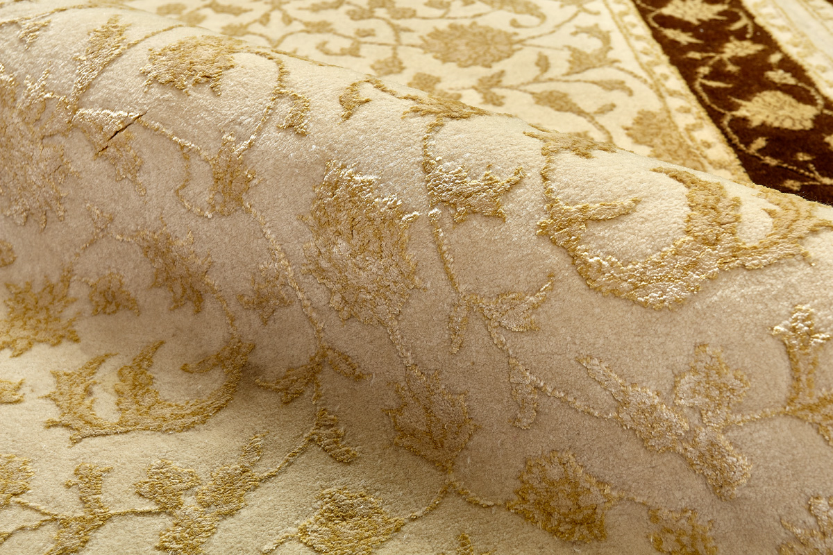 Каждый ковер в этой коллекции соткан вручную из шерсти и арт шёлка опытными индийскими мастерами.