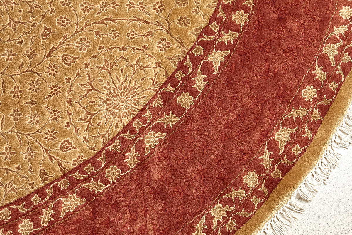 Более пяти веков назад в городе Агра зародилась знаменитая индийская школа ковроткачества, прославившаяся не меньше, чем расположенный здесь же Тадж-Махал. Мощное персидское влияние, помноженное на местный колорит, привело к появлению оригинальных орнаментов с богатыми растительными узорами — причудливым цветам, ветвям и листьям, разбросанным по всему полю ковра.