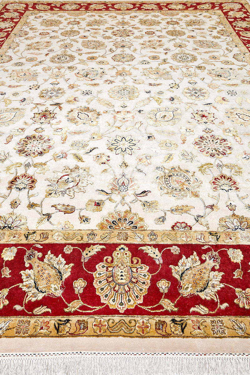 Более пяти веков назад в городе Агра зародилась знаменитая индийская школа ковроткачества, прославившаяся не меньше, чем расположенный здесь же Тадж-Махал. Мощное персидское влияние, помноженное на местный колорит, привело к появлению оригинальных орнаментов с богатыми растительными узорами — причудливым цветам, ветвям и листьям, разбросанным по всему полю ковра.