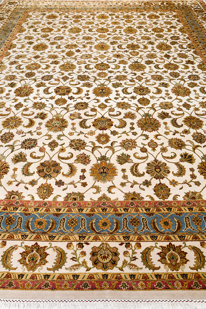 Более пяти веков назад в городе Агра зародилась знаменитая индийская школа ковроткачества, прославившаяся не меньше, чем расположенный здесь же Тадж-Махал. Мощное персидское влияние, помноженное на местный колорит, привело к появлению оригинальных орнаментов с богатыми растительными узорами — причудливым цветам, ветвям и листьям, разбросанным по всему полю ковра.