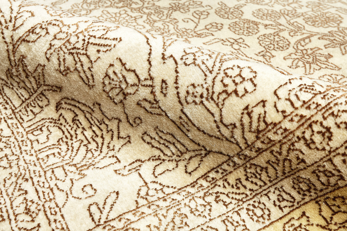Каждый ковер в этой коллекции соткан вручную из шерсти и арт шёлка опытными индийскими мастерами.