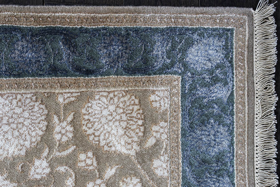 Каждый ковер в этой коллекции соткан вручную из шерсти и арт шёлка опытными индийскими мастерами.