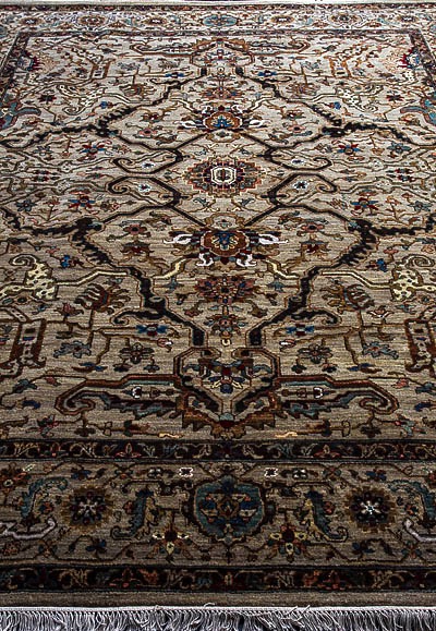 Более пяти веков назад в городе Агра зародилась знаменитая индийская школа ковроткачества, прославившаяся не меньше, чем расположенный здесь же Тадж-Махал. Мощное персидское влияние, помноженное на местный колорит, привело к появлению оригинальных орнаментов с богатыми растительными узорами — причудливым цветам, ветвям и листьям, разбросанным по всему полю ковра.