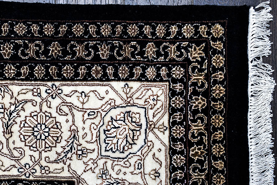 Более пяти веков назад в городе Агра зародилась знаменитая индийская школа ковроткачества, прославившаяся не меньше, чем расположенный здесь же Тадж-Махал. Мощное персидское влияние, помноженное на местный колорит, привело к появлению оригинальных орнаментов с богатыми растительными узорами — причудливым цветам, ветвям и листьям, разбросанным по всему полю ковра.
