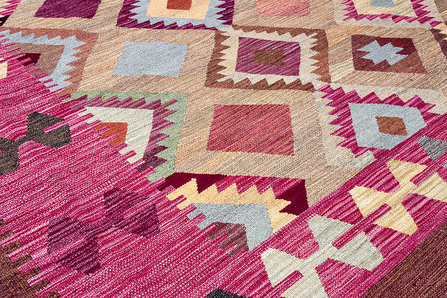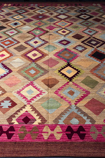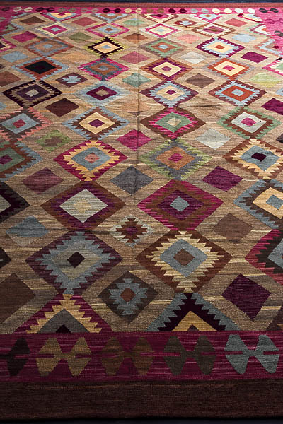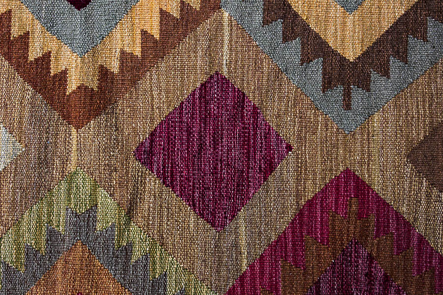 Узор ковров из коллекции Килим создаётся взаимодействием нитей утока и нитей основы, благодаря чему получается геометрический узор.