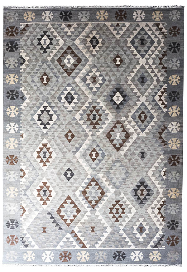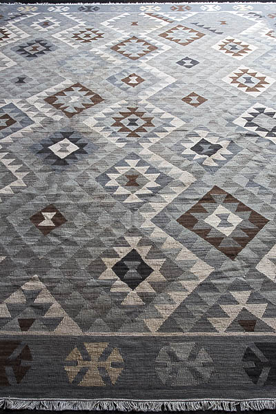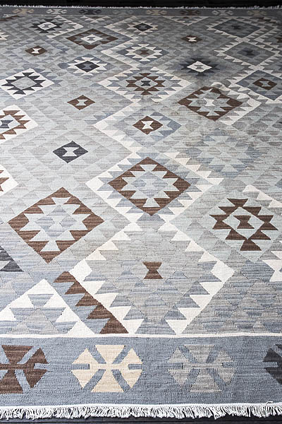Узор ковров из коллекции Килим создаётся взаимодействием нитей утока и нитей основы, благодаря чему получается геометрический узор.