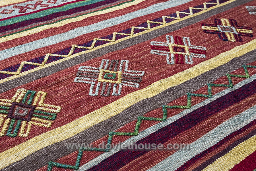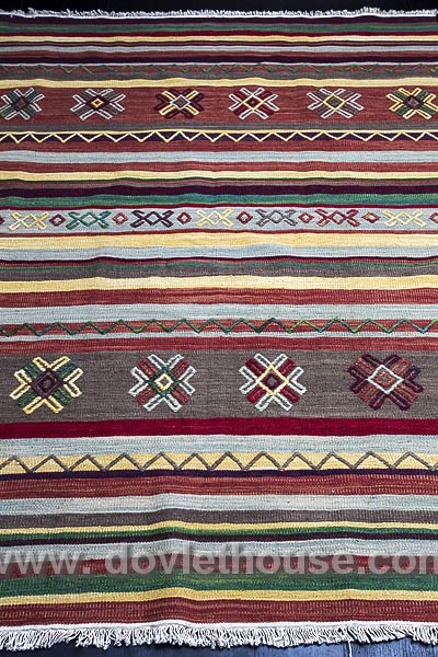 Узор ковров из коллекции Килим создаётся взаимодействием нитей утока и нитей основы, благодаря чему получается геометрический узор.