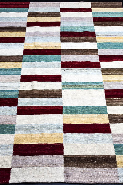 Узор ковров из коллекции Килим создаётся взаимодействием нитей утока и нитей основы, благодаря чему получается геометрический узор.