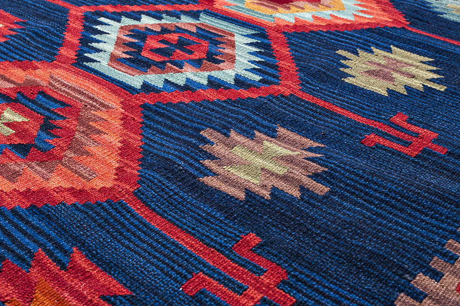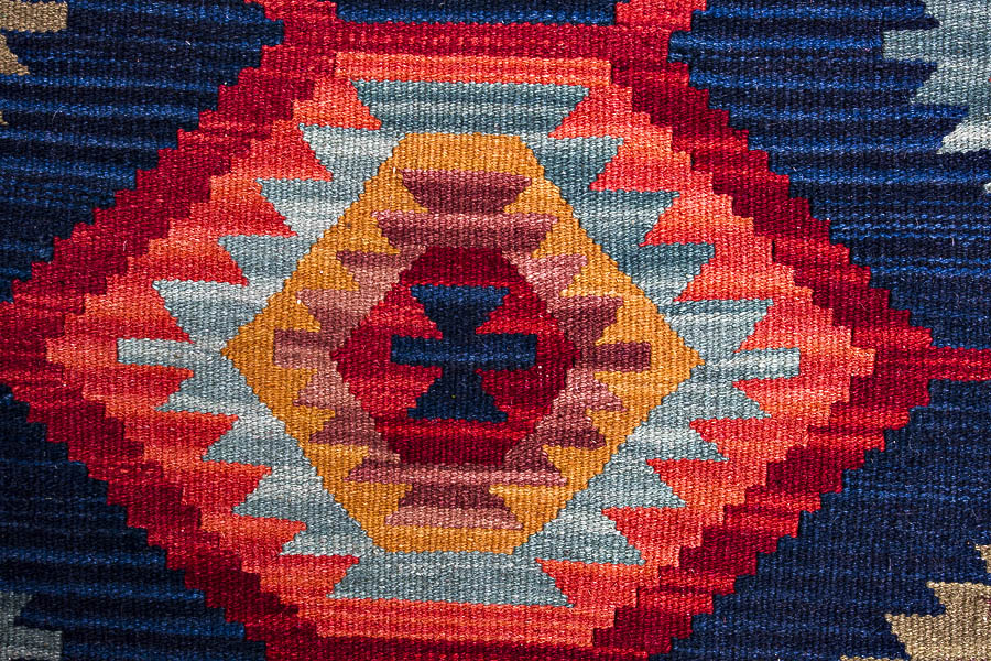 Узор ковров из коллекции Килим создаётся взаимодействием нитей утока и нитей основы, благодаря чему получается геометрический узор.