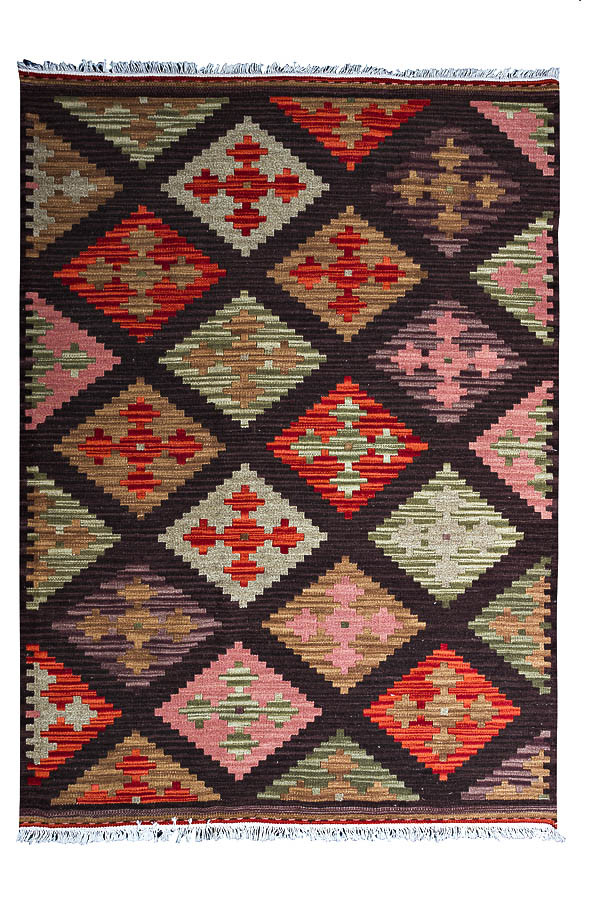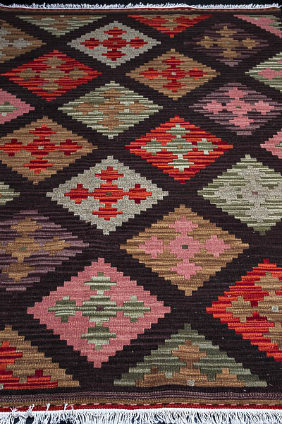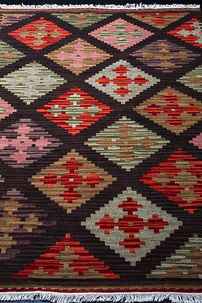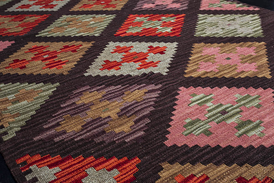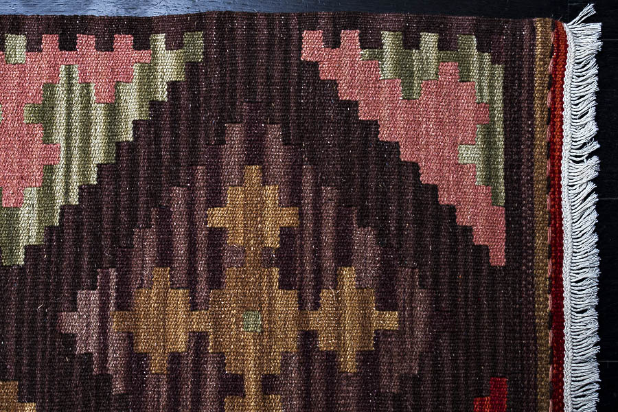 Узор ковров из коллекции Килим создаётся взаимодействием нитей утока и нитей основы, благодаря чему получается геометрический узор.